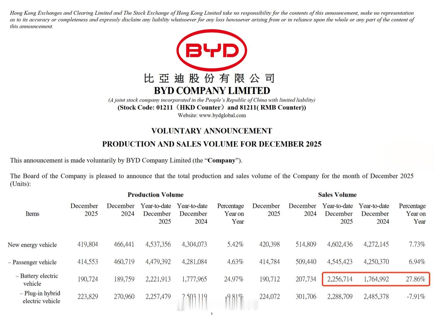 外媒预计比亚迪在2025年将首次超越特斯拉,成为全球纯电动汽车年度销量冠军。比亚迪官方数据显示,2025年共交付2256714辆纯电汽车,同比增长27.86%。特斯拉比亚迪 相比之下据Visible Alpha调查的分析师预测,特斯拉2025年全年交付量预计为165万辆,同比下降7.8%,连续第二年下滑。尽管特斯拉在2025年第3季度推出了两款畅销车型的低价版本,但仍难以抵挡中国竞争对手的激烈攻势。比亚迪全球扩张步伐稳健,特别是在英国市场表现抢眼。去年10月,比亚迪透露英国已成为其中国以外的最大市场。得益于海豹U插电式混合动力SUV的强劲需求,比亚迪截至9月底在英国的销量同比激增了880%。新能源汽车销量