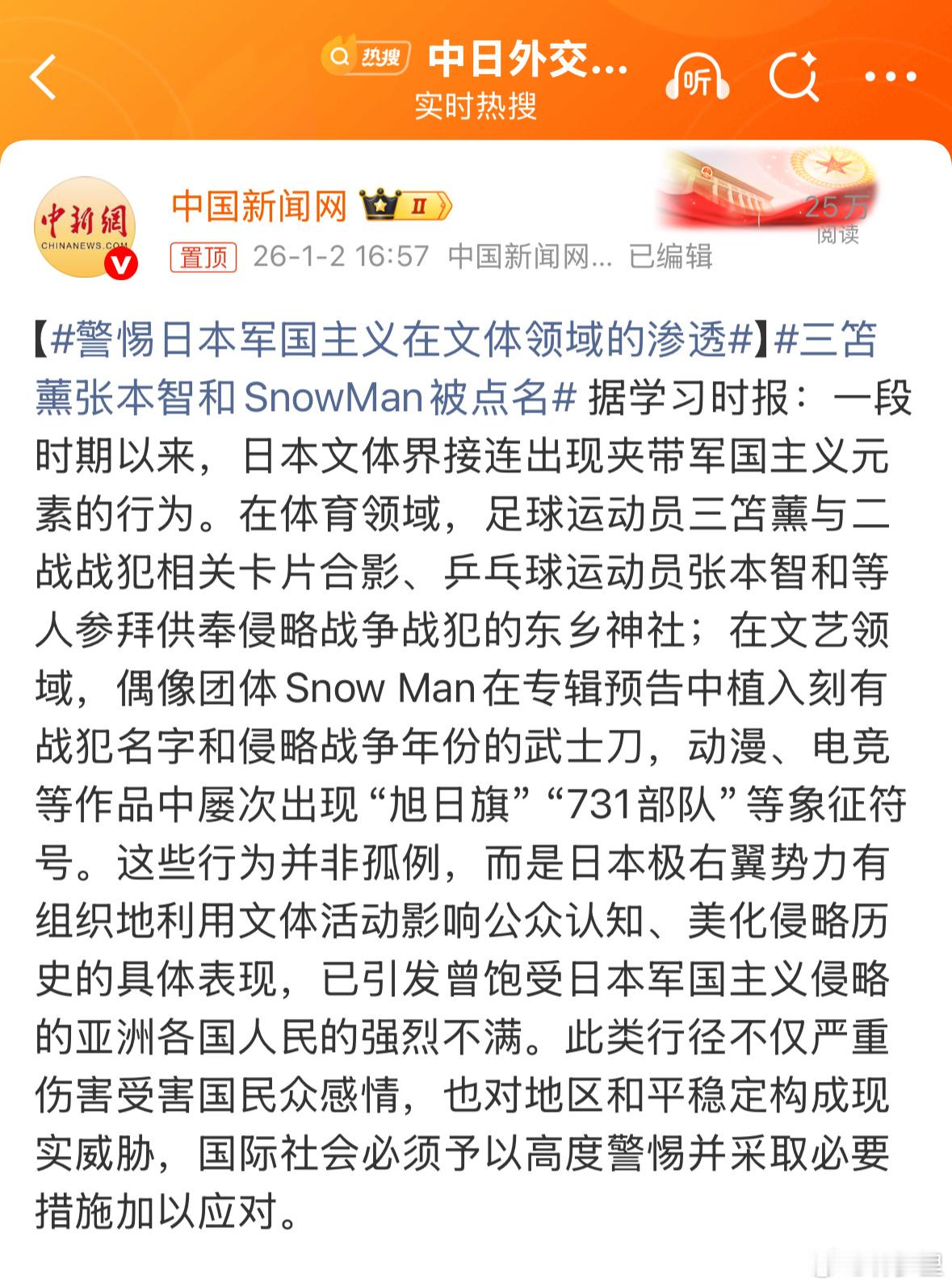 警惕日本军国主义在文体领域的渗透张本智和,被点名了。这是公开锤他,不会还有人洗吧,不会吧。微博是不是也应该限制有关他的热搜了? 张本智和被点名