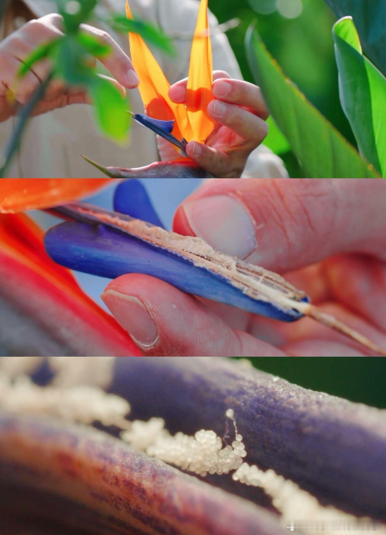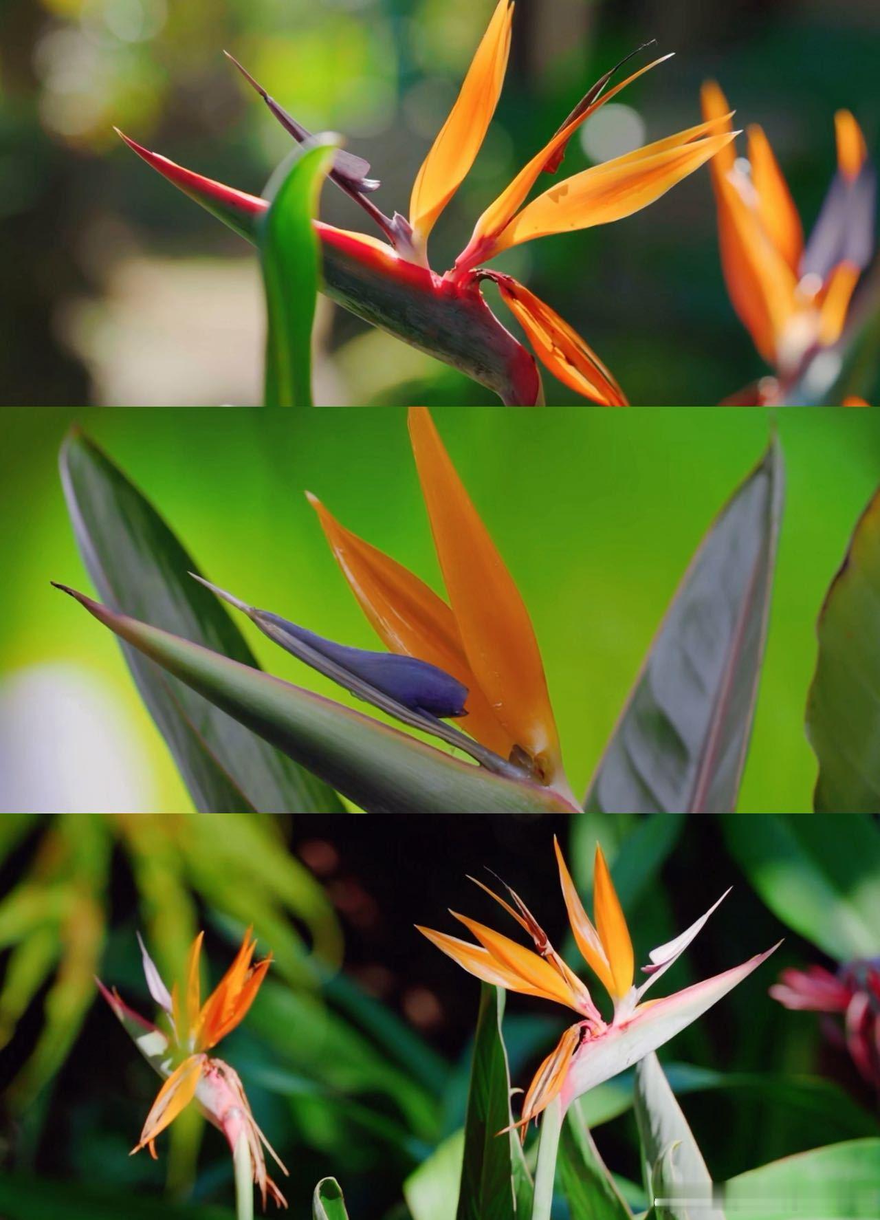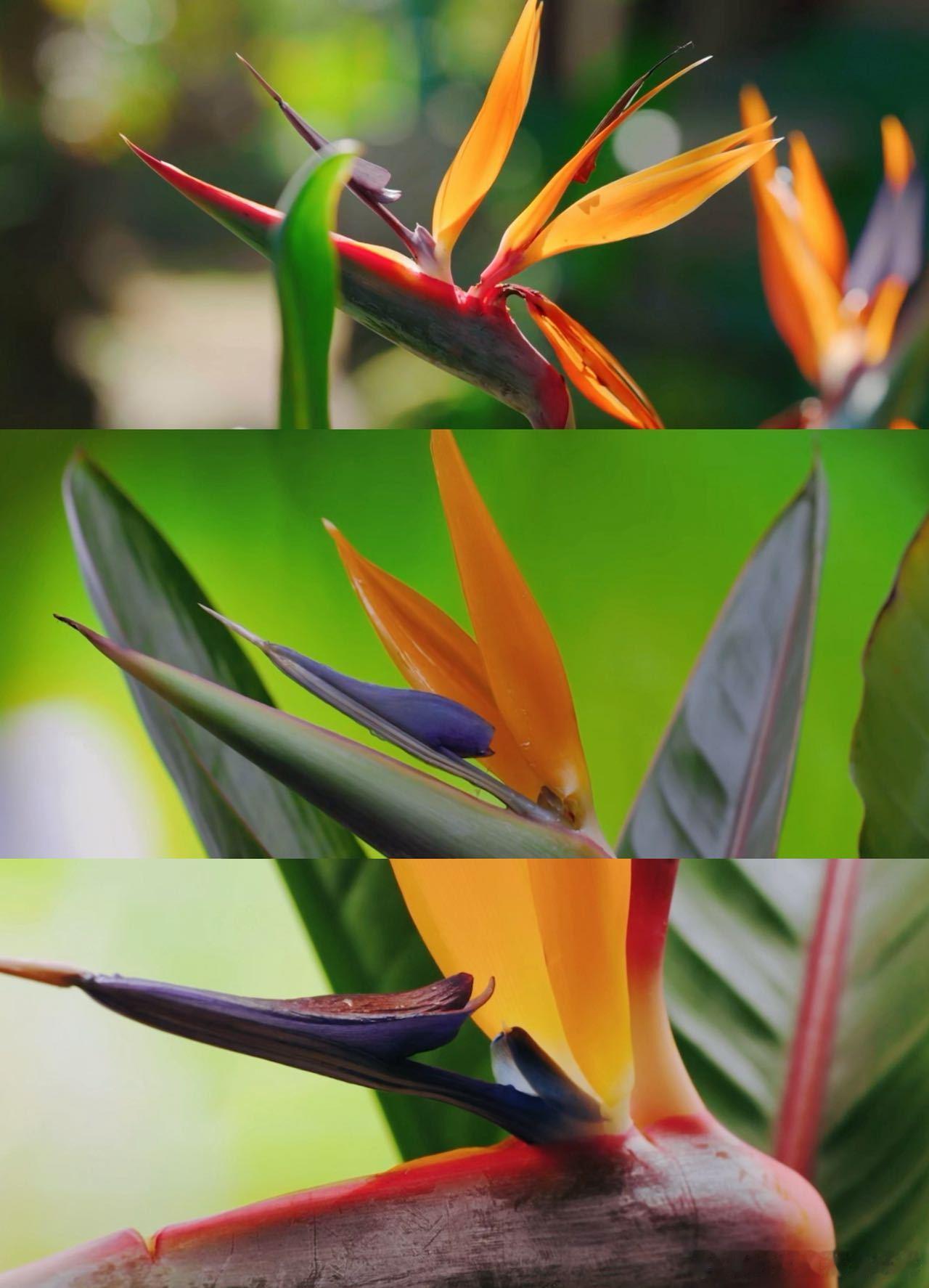 原来天堂鸟还会开花会招待小鸟的花花你见过吗 天堂鸟开花也太惊艳了,挺拔又仙气,更惊喜的是它还能给小鸟留采蜜位,一花一鸟的互动,满是大自然的治愈感~