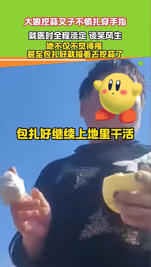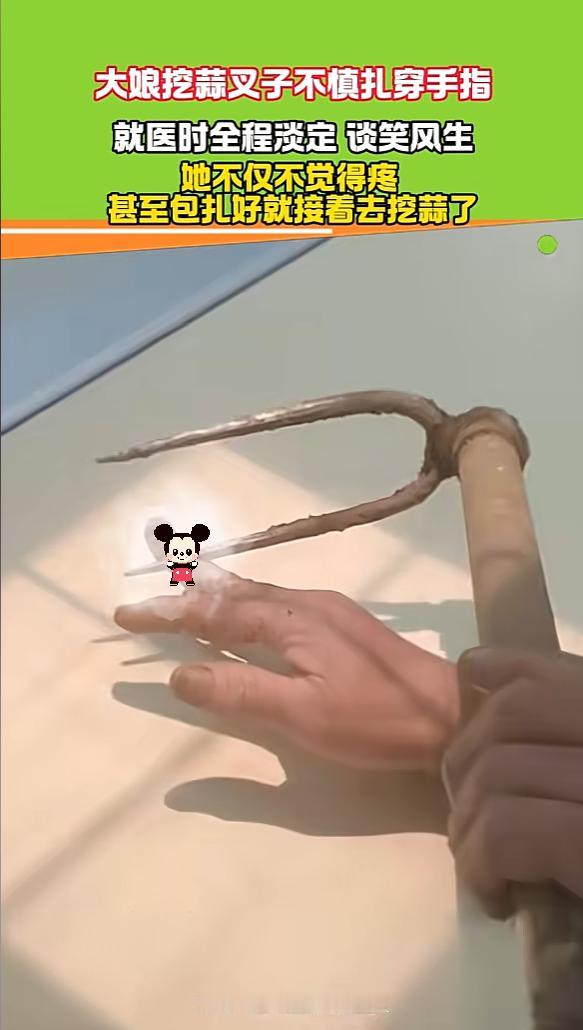 “这心态没谁了!”12月30日,云南,一大娘用叉子挖蒜时,不小心将手指扎穿,去诊所就医的时候,大娘不仅没喊疼,还一脸淡定,全程乐呵呵的和别人聊天,在包扎好后,直接就赶回地里干活去了。网友:你大娘还是你大娘! 当天的蒜地里格外热闹,乡亲们都低着头弯腰忙活,手里的铁叉挥舞着,一个个铆足了劲抢收,云南大娘也和大伙儿一样,专注地在地里劳作,想着能尽快把地里的大蒜收完,可就在她用力把铁叉插进土里,想撬起埋在深处的蒜头时,意外突然来了。 不知道是力道用偏了,还是泥土里有阻碍,锋利的铁叉尖头没顺着泥土走,反而一下子歪向了手边,紧接着就是一阵钻心的疼,尖锐的铁叉直接贯穿了她的中指。 周围一起干活的乡邻眼瞅着这一幕,吓得脸都白了,手里的活计立马扔到一边,赶紧围了上来,看着大娘被铁叉扎穿的手指,大伙儿一个个倒吸凉气急得直跺脚,生怕这根手指保不住,有人赶紧喊着“快送诊所”,有人已经伸手想扶她,整个现场都乱成了一团,满是紧张和担忧。 可在这混乱又惊恐的氛围里,最淡定的竟然是受伤的大娘本人,她慢悠悠地站直身子,脸上一点痛苦的表情都没有,反而透着一股云淡风轻,好像被扎穿的不是自己连心的手指,只是被一根小刺扎了一下似的,面对乡亲们的焦急催促,她也没慌,跟着大家慢慢往附近的诊所走。 到了诊所接诊的医生一看到大娘的伤势,心里都忍不住一惊,那可是被带着泥土的脏铁叉扎穿了,不仅痛感强烈,感染的风险也极大绝对不是小事。 可大娘坐下后,脸上始终挂着笑,一点都不像个重伤员,医生给她清理伤口、包扎的时候,她还能乐呵呵地跟医生、跟陪同的乡邻聊天,一会儿说地里的大蒜长势好,一会儿说今年收成应该不错,那份谈笑风生的从容,让见惯了各种外伤的医生都觉得不可思议。 换作一般人伤成这样,别说扎穿手指,就是手上破个大口子,处理完伤口肯定第一时间想回家躺着养伤,喝点好的补补,毕竟十指连心,疼起来钻心刺骨,而且手上的伤也影响做事,可这位云南大娘的想法,跟普通人完全不一样。 医生刚把她手上的纱布裹好,叮嘱她注意休息、别沾水、按时换药,大娘就站起身,说自己地里还有好多大蒜没看完,得赶紧回去接着干,陪同的乡邻都劝她,让她先回家歇着,伤口养好了再干活也不迟,可大娘根本听不进去,心里惦记的全是地里的收成,在她看来这点皮肉伤,远远比不上没收完的大蒜重要。 没等大伙儿再劝,大娘已经转身走出了诊所,直奔那块刚让她流了血的蒜地,这一幕把在场的人都看傻了,刚刚才受了那么重的伤,流了血,还没从剧痛里缓过劲来,居然能若无其事地继续下地干活,这份“轻伤不下火线”的韧劲儿,实在让人佩服。 其实这种坚强,在农村的老一辈人身上并不少见,他们一辈子跟土地打交道,早就习惯了隐忍,把肉体的苦楚不当回事,随便处理一下就继续操劳,但放在现在这种近乎执拗的坚强,让人敬佩的同时,更多的是心疼。 这事儿被传到网上后,很快就引发了网友的热议,大家除了感叹“你大娘还是你大娘”,佩服她极致的好心态外,更多的是担忧,有网友说:“这铁叉上都是泥土和细菌,贯穿伤最容易感染破伤风了,可不能掉以轻心啊。”还有网友说:“伤筋动骨一百天,这么重的伤怎么能不休息?万一伤口发炎恶化,可就得不偿失了。” 大家都明白大娘是心疼地里的收成,不想因为这点伤耽误农时,但大家更希望她能重视自己的身体,身体才是革命的本钱,要是为了抢收大蒜,导致伤口感染恶化,影响了身体健康,反而更不划算,硬扛虽然看着英勇,但在这个讲究科学护理的年代,适当休息、好好养伤,才是对自己负责。 这大概就是老一辈劳动人民的缩影吧,在疼痛面前笑呵呵,在生计面前不低头。他们的硬核和坚强,让人忍不住想竖大拇指,可同时又想把她拽回家,让她好好歇一歇,希望大娘能听进去大家的劝告,抽时间好好养伤,也希望她今年的大蒜能有个好收成,不辜负她的辛苦付出。 (信息来源:《云南一大娘挖蒜叉子扎穿手指,就医全程淡定谈笑风生。》河南乡村频道)