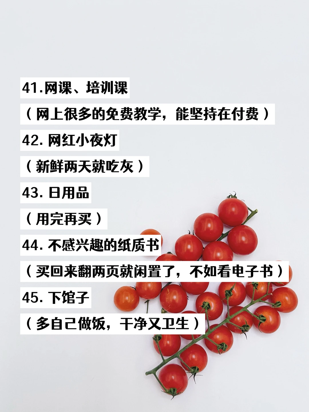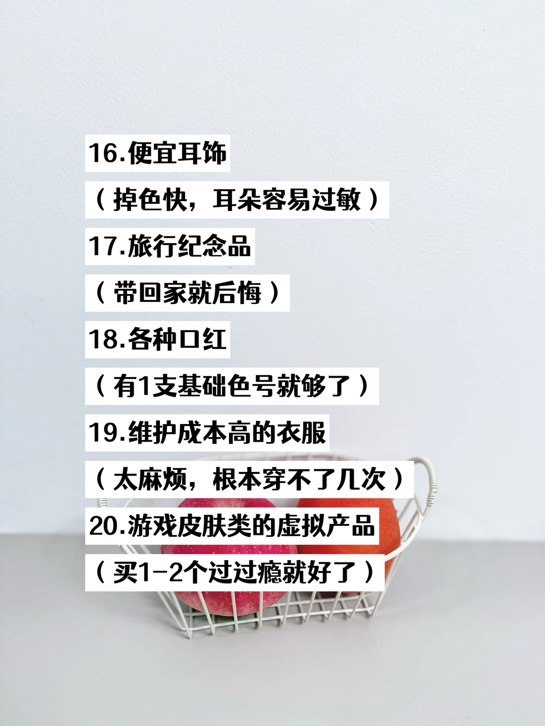 大家好[派对R],这里是努力搞钱,存到百万就退休的小猫👋 天气越来越热了,蕞近换季整理衣橱+房间,清出一堆闲置后彻底清醒了! 经济下行,真的别再为「伪需求」买单了🙅♀️ 分享我的50个不买清单,帮你理性消费、轻松存钱! ✨真正的极简不是不买,而是只买100分物品! 换季整理后我更清楚: 「不买立省100%」真的爽~
