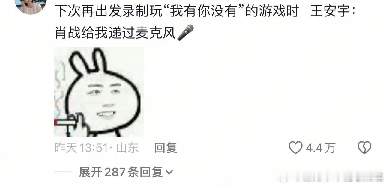 也是没想到肖战给王安宇递话筒这么出圈,无心插柳柳成阴,事情总是在意想不到间往美好的方向的走去