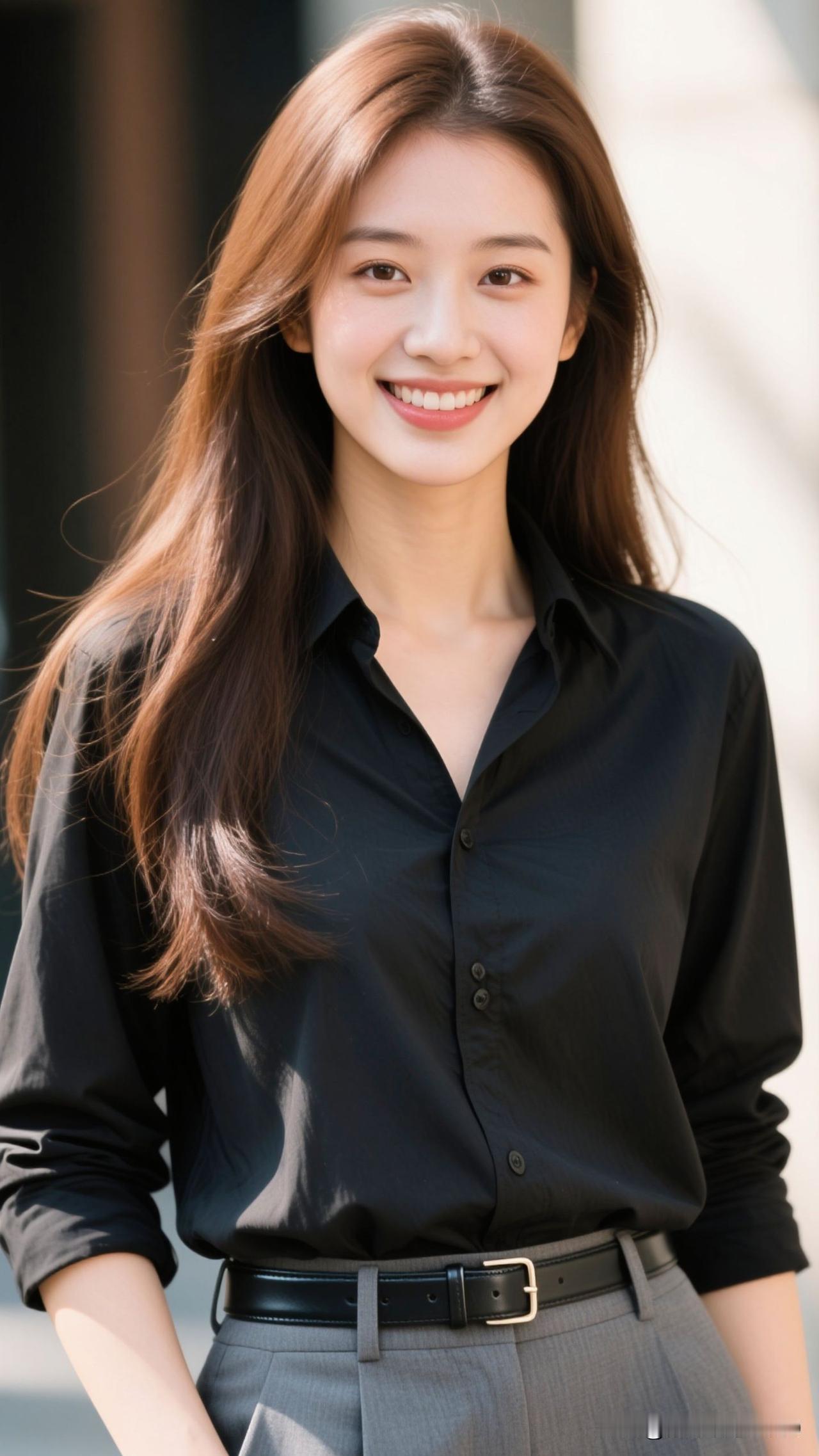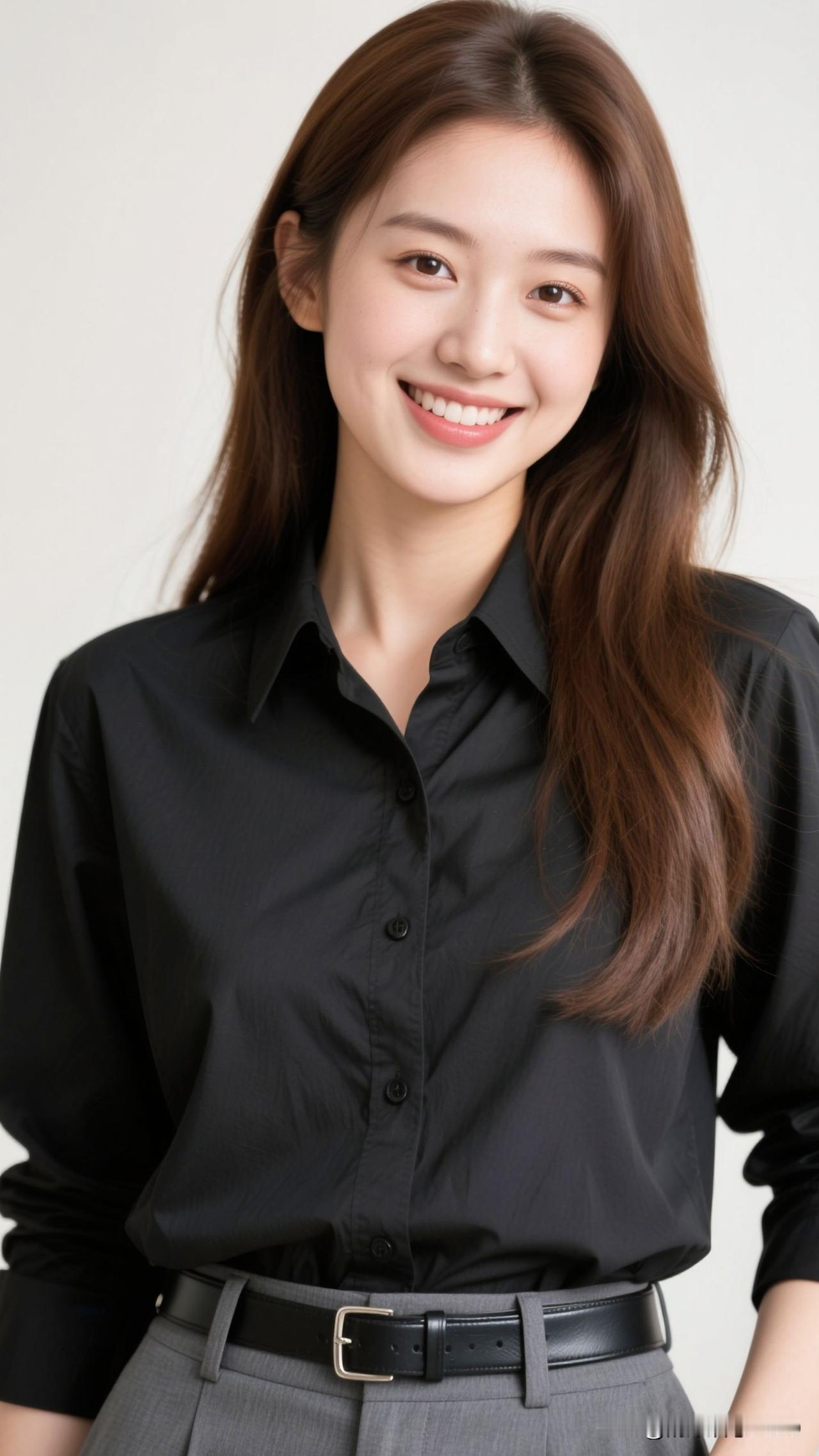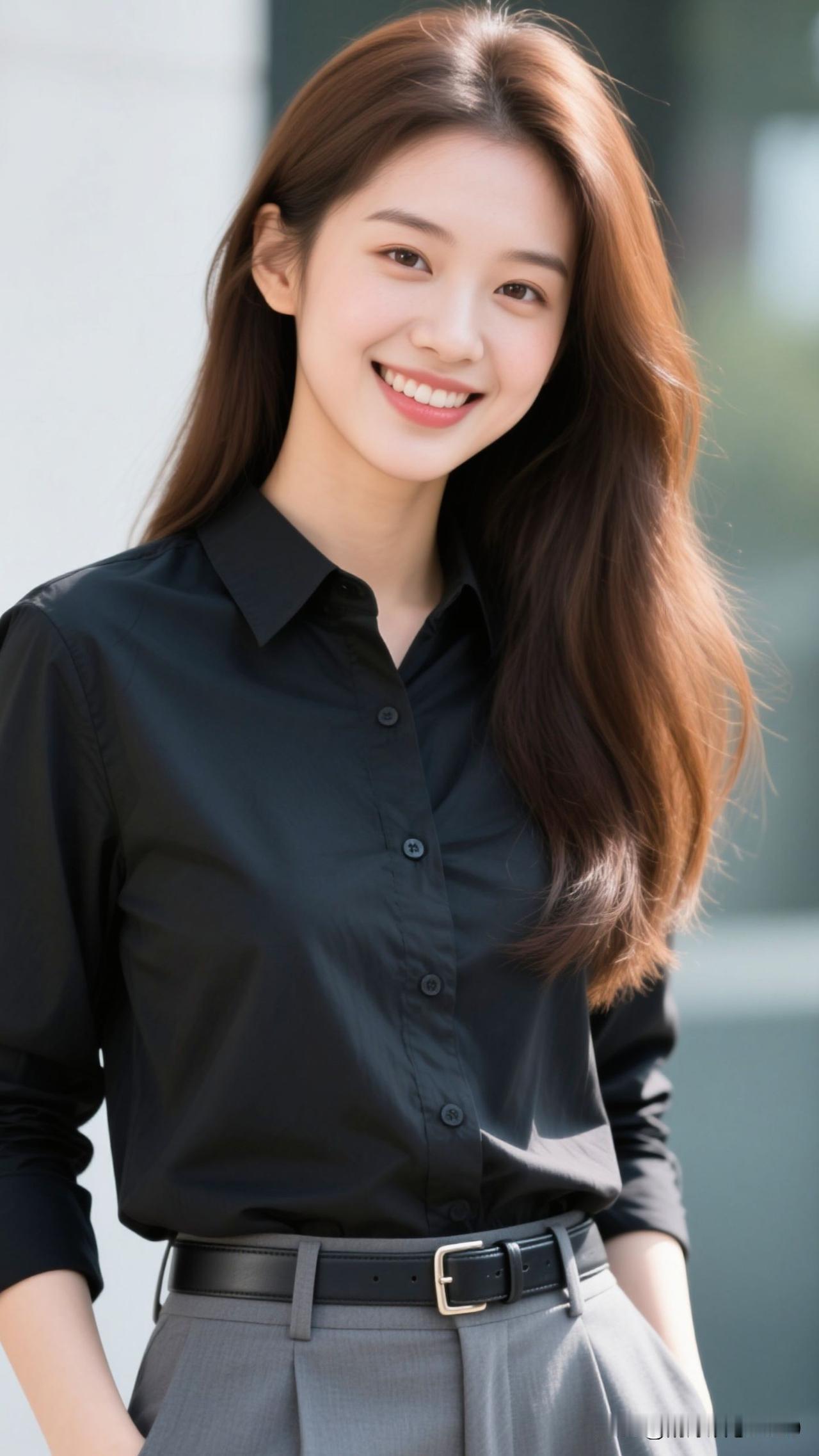 素色为笺,黑衫是凝练的笔,笑意是蘸了甜的墨,呼吸间都漫着清冽又治愈的风。素色温柔