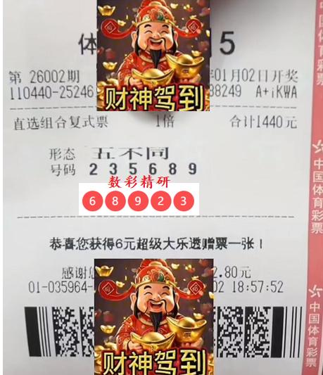 好运总是如此不期而至!就在新年伊始,排列5的第二期开奖便传来喜讯——2日开奖的体彩排列5中奖号码为“68923”。当期就开出97注大奖,有幸运彩民巧妙采用“五不同”的玩法,一举揽获10万元大奖。幸亏没有出现重复数字,要不这1440元又打水漂了。 这份好运来得如此之快,如此之早,才第二期就已开花结果。不妨一起来沾沾这份喜气,或许下一份惊喜,正悄悄向你走来呢。