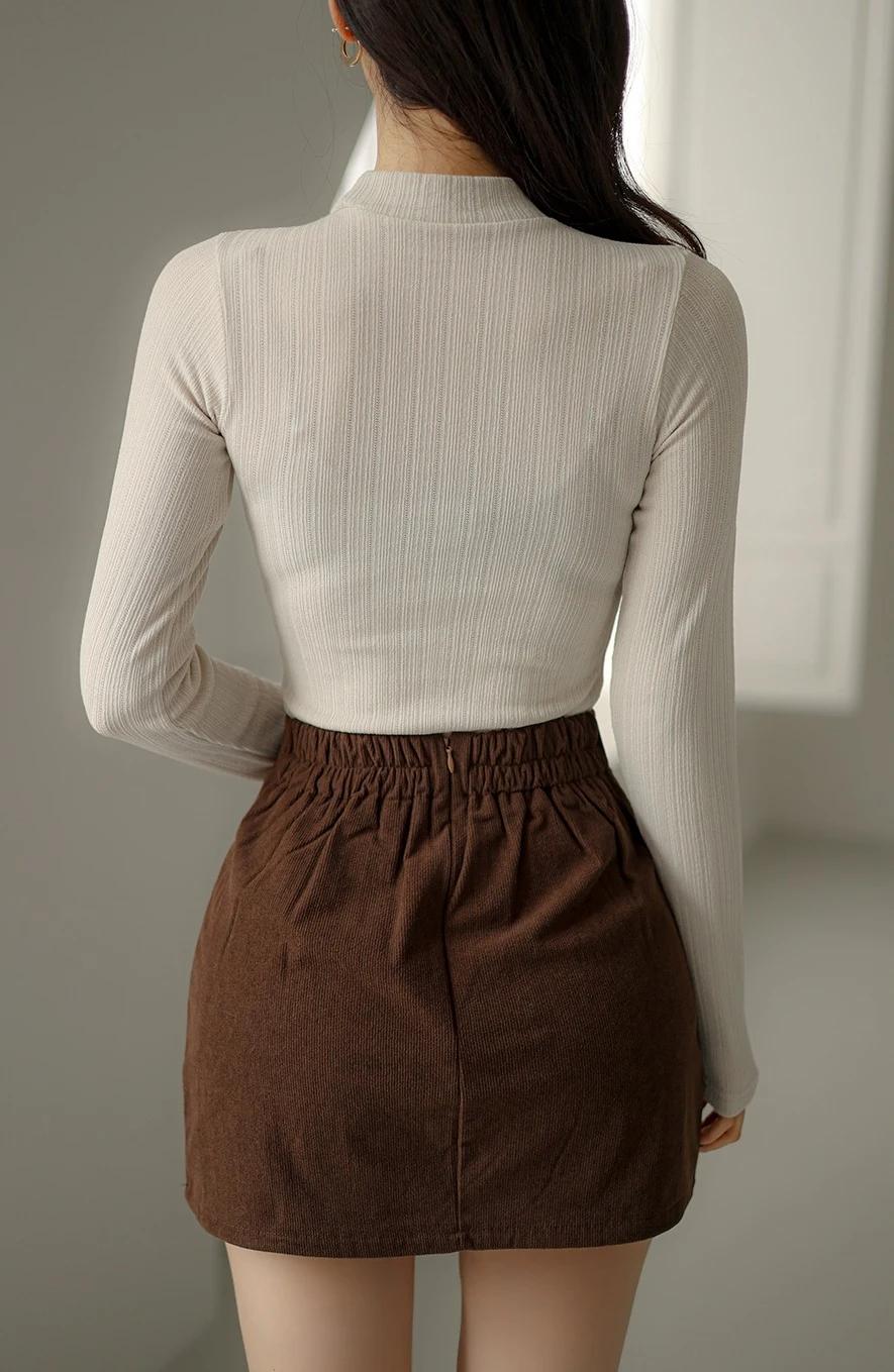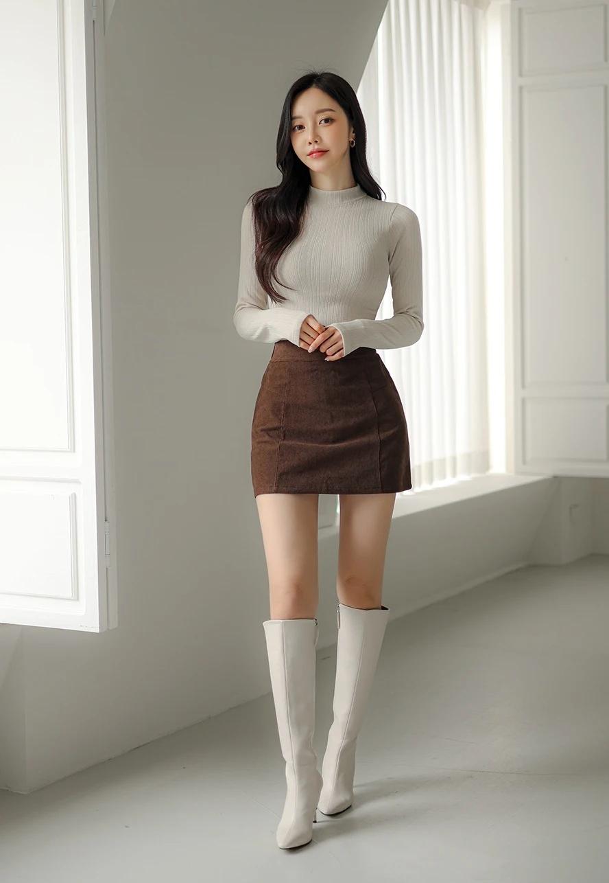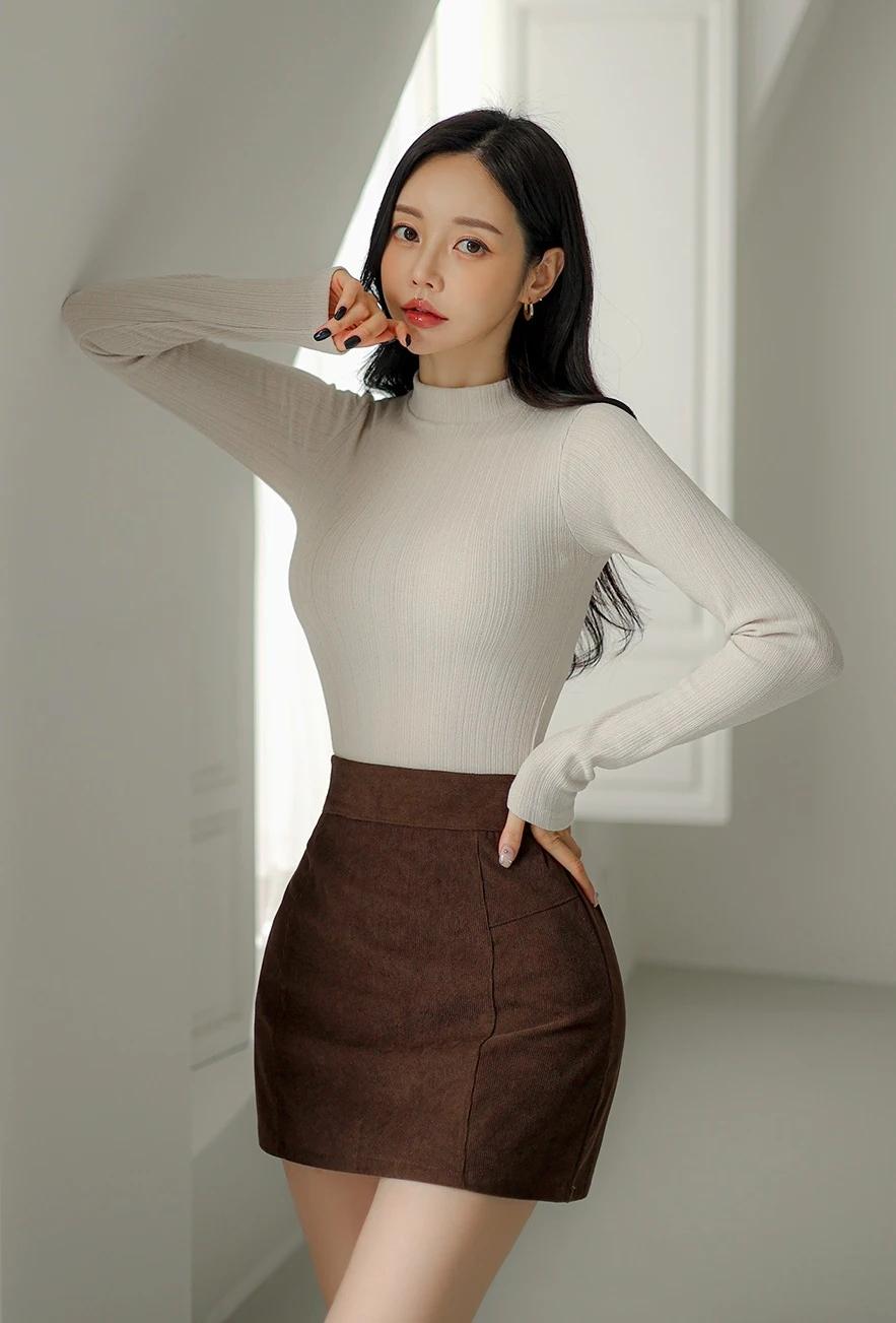 孙允珠-温柔甜美的少女,白色毛衣搭配棕色短裙,坐在白色椅子上,微笑着看向镜头。你喜欢怎样的日常穿搭呢 今天最感慨的一句话 连衣裙怎么穿温柔又日常?