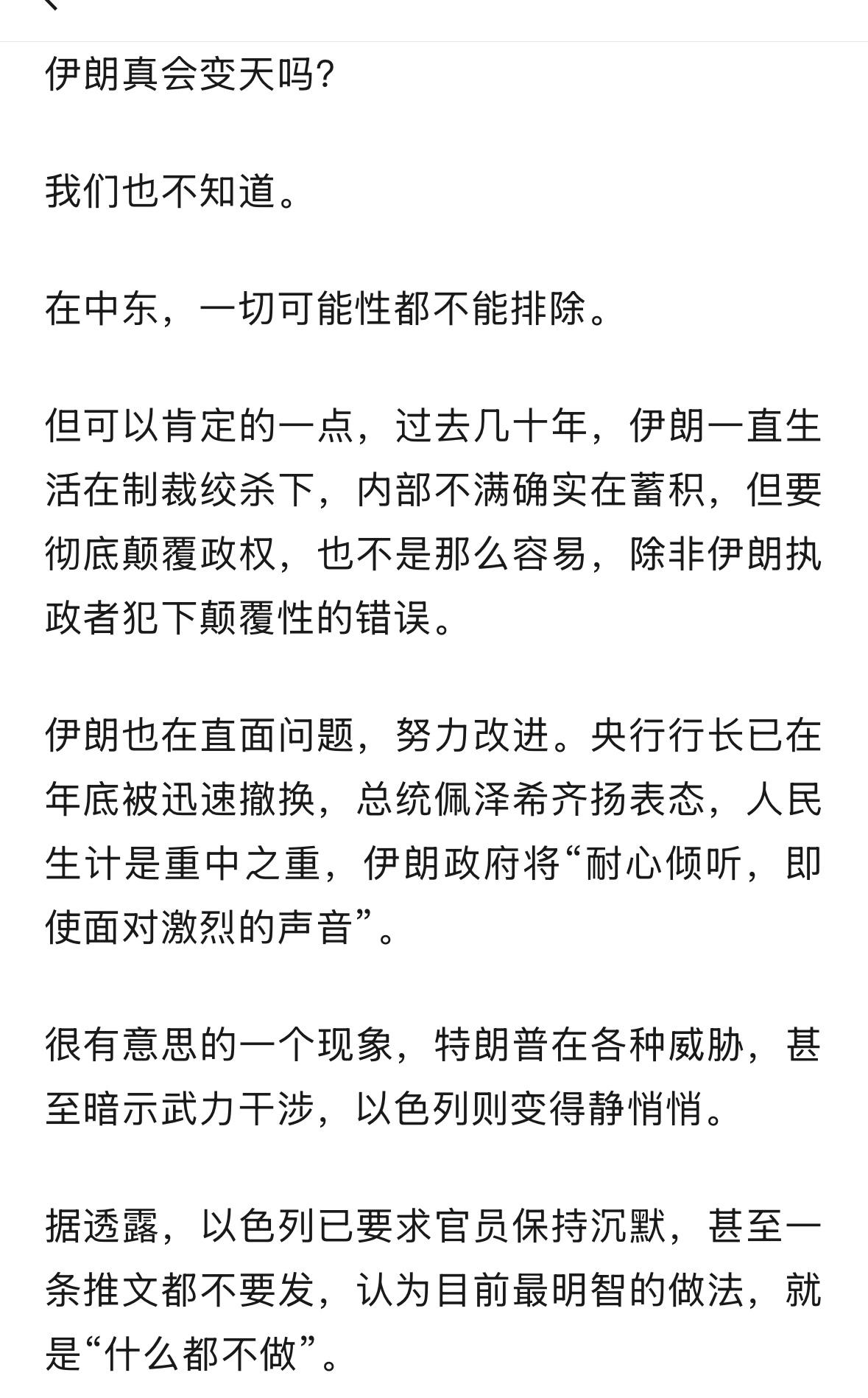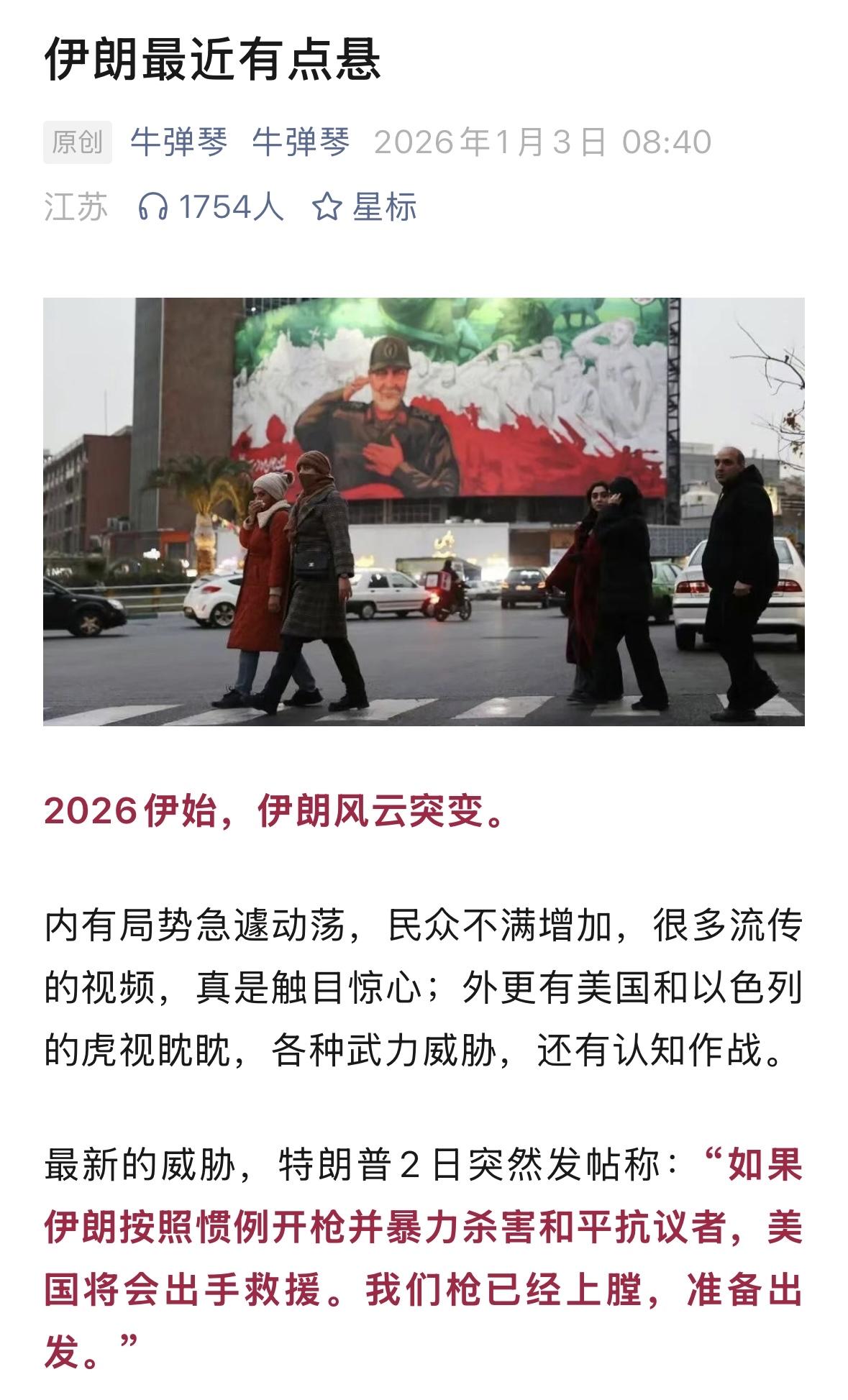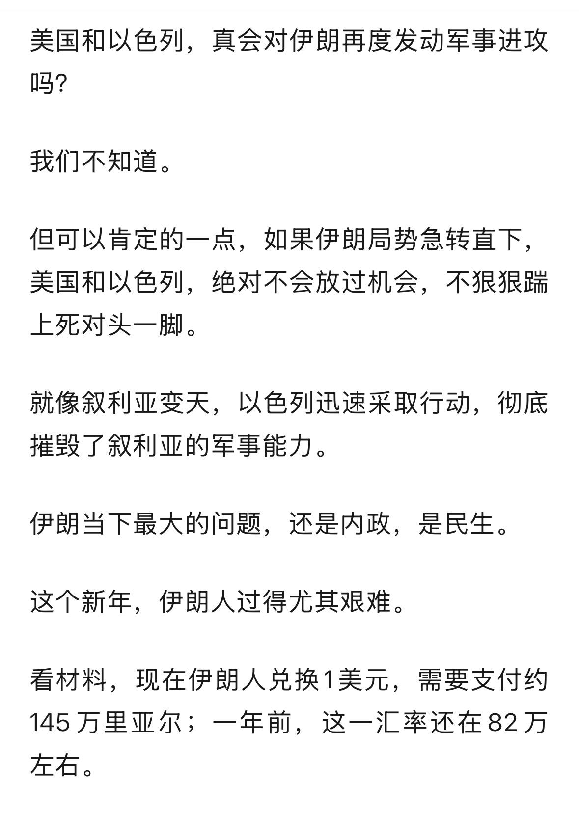 牛弹琴这篇文章,挺全面,看来,牛弹琴都说,伊朗有点悬了,但是,有什么悬的?一场风波过后,伊朗还是伊朗,叙利亚还是叙利亚,伊拉克还是伊拉克,利比亚还是利比亚,阿富汗还是阿富汗,委内瑞拉还会是委内瑞拉,乌克兰还会是乌克兰,只是苏联不是那个苏联了?