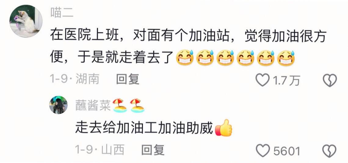 在医院上班,对面有个加油站,觉得加油很方便,于是就走着去了