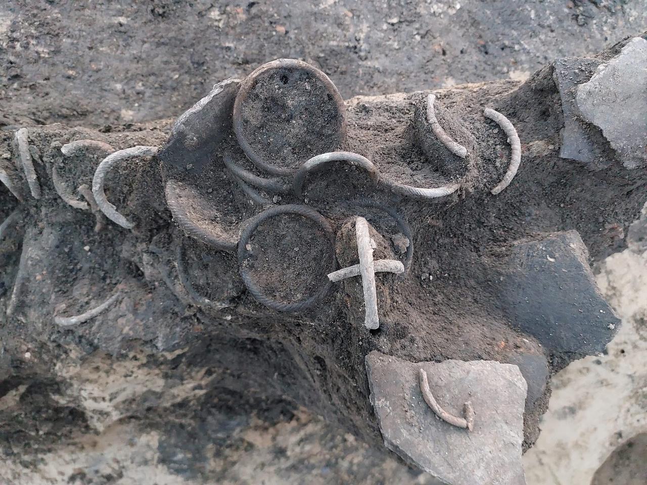 沃伦考古队2025年在乌克兰弗拉基米尔的发现:一批保存完好的573个玻璃手镯,是蒙古罗斯之前的一批宝藏,也是迄今为止发现的最大一批。这批宝藏揭示了基辅在10至13世纪是这些贸易商品的重要生产中心。 与以往零散的宝藏不同,这批完整的宝藏包含一个十字形骨灰盒,这使得人们能够对当时的物质文化和商业活动进行精确分析,并计划将其作为专门的博物馆展品。这是一件蒙古时期之前的珍宝,此前此类珠宝仅发现于单个标本或残片中。而这里,实际上是一个完整的、同时期的遗址群,可供研究,并有助于增进我们对当时物质文化的了解。我们在霍多西找到过一条这样的手镯,当时就非常开心!后来在这里又找到了大约573条(还不包括那些碎片)!不知为何,我对玻璃手镯情有独钟,因为它们是我最早发现的非金属制品。 这位考古学家兼作家分享了她早期职业生涯中的发现所带来的个人热情,同时强调了挖掘背景的价值