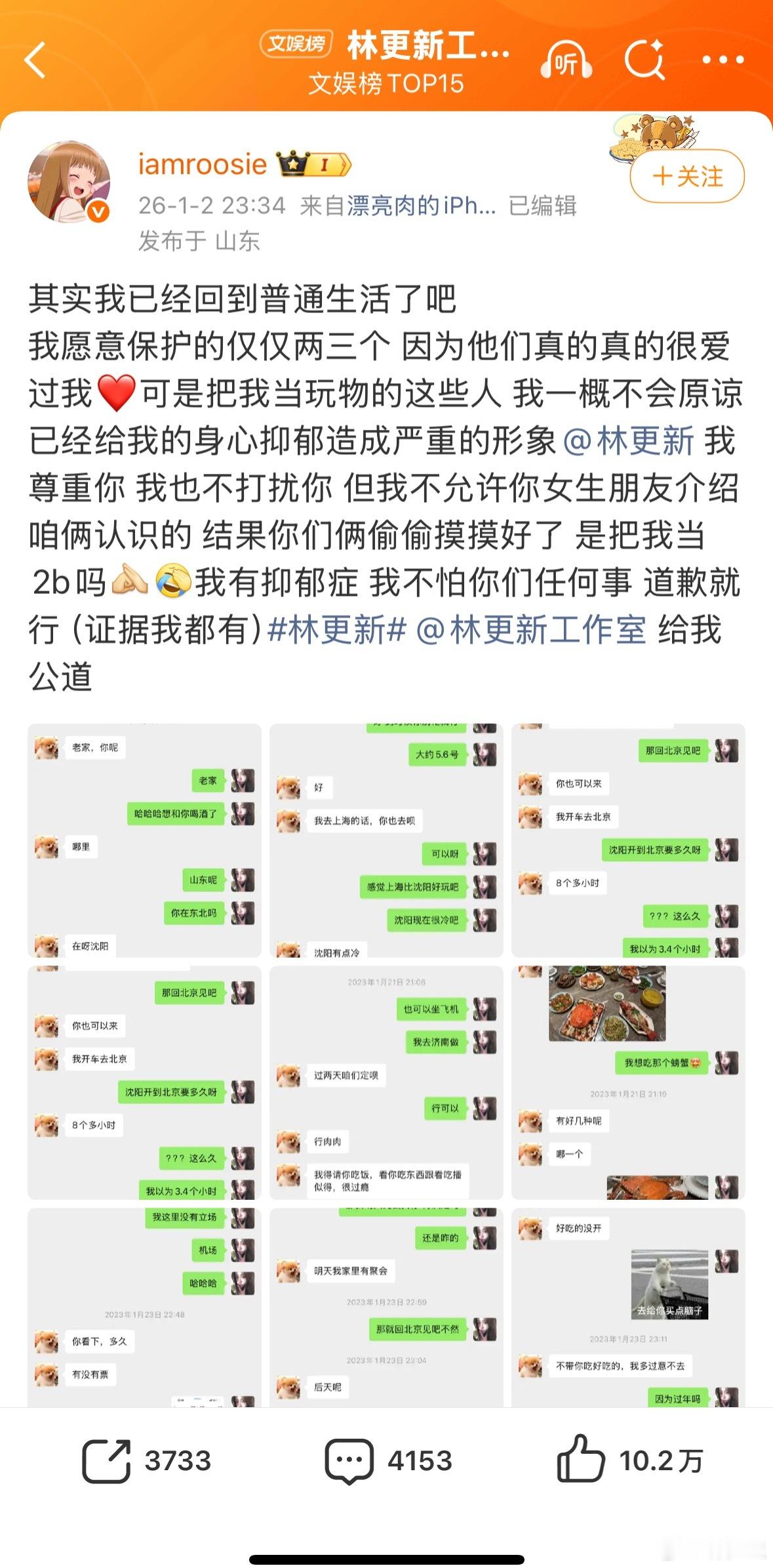 司晓迪林更新聊天记录抑郁症风评烂完了,一些癫公癫婆,自己发疯总先申明自己有抑郁症。似乎有抑郁症,就可以无所顾忌冲了。让抑郁症彻头彻尾变成一种搞事的兜底病。 iamroosie