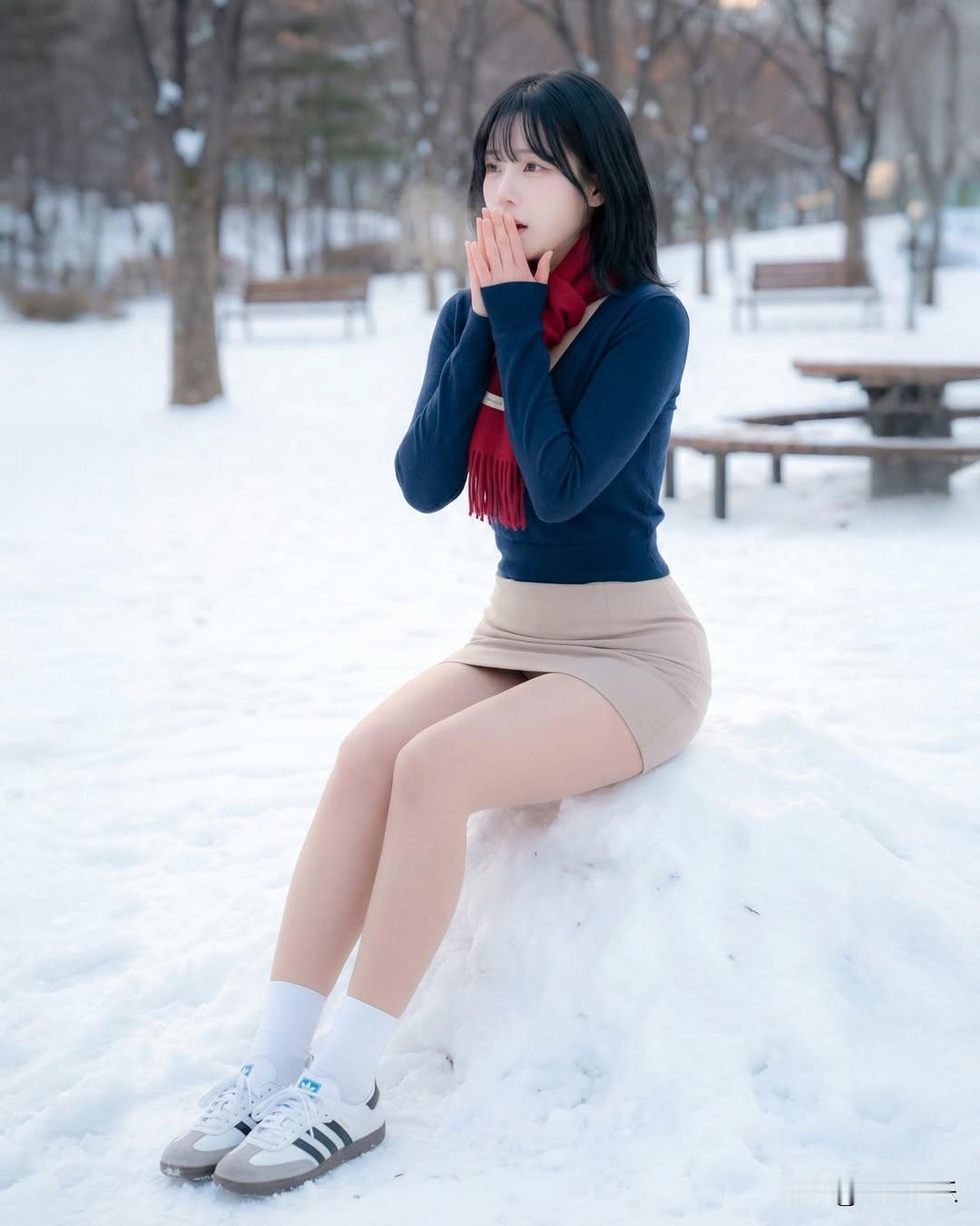 冬日雪景中,少女轻盈舞动,感受冬日暖阳。