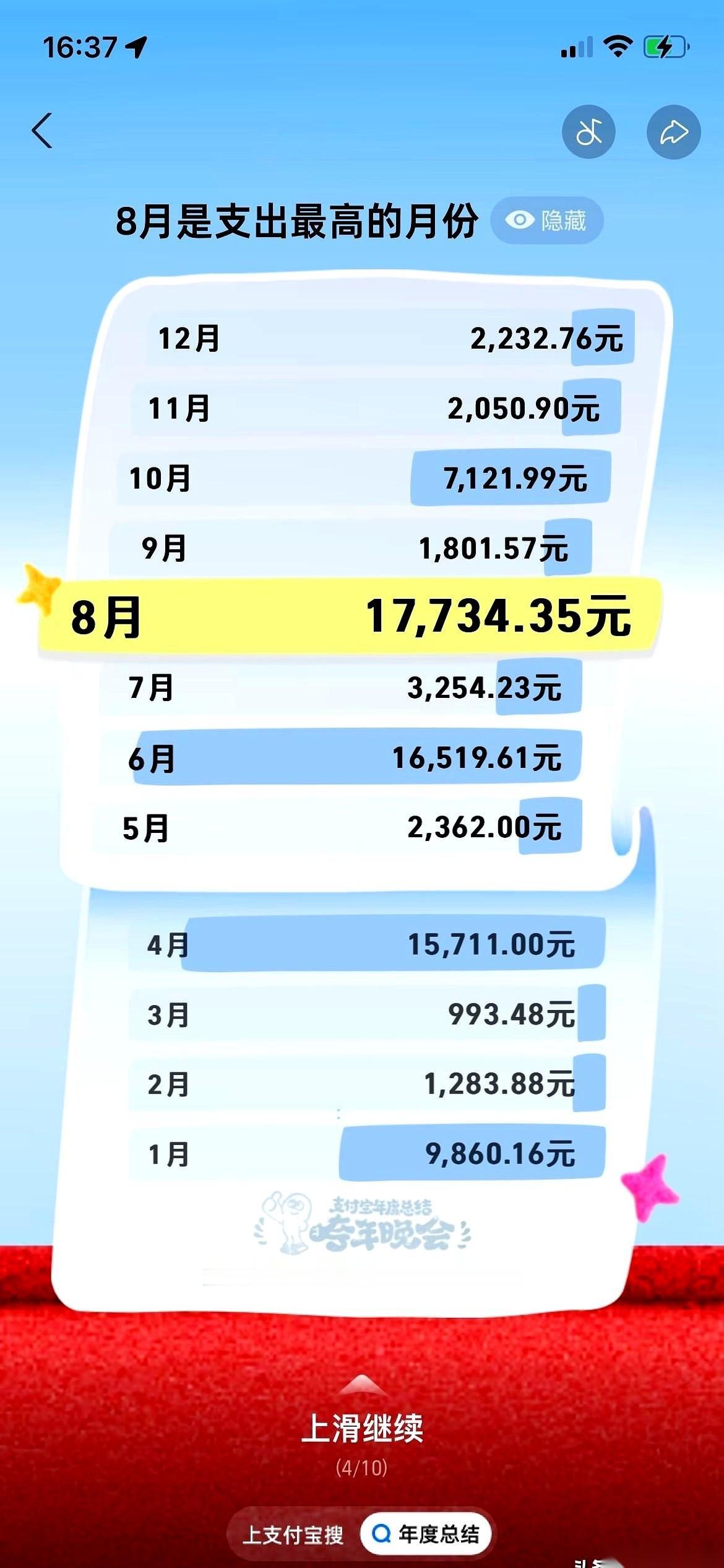 2025年最后两个小时,老公“砰”一声把手机扔在桌上。 他刚拿到年终奖,数字不好看,脸拉得老长,冲着我吼:“对账!” 行,对就对。 我俩的手机屏幕在漆黑的客厅里亮着,像两块冰。他划拉着屏幕,一笔一笔地报,我在计算器上飞快地按。 “支付宝,8万1。” “微信,3万。” 我俩谁也没说话,只有手机计算器“哒、哒、哒”的按键音,在寂静的空气里,一下下敲在心上。他一个月到手就6500,一年死工资7万8,这数字根本对不上。 加上零零碎碎的现金开销,总支出12万出头。 计算器上,跳出一个刺眼的红色负号:-4万多。 他一把拿过我的手机,盯着那个数字,没看我,扭头望向窗外黑漆漆的夜空,整个人的肩膀,一下子就垮了下去。 我拿回手机,往上翻着账单明细。一笔笔“培训费”,一张张“挂号单”,密密麻麻,像针一样扎眼。 那一刻我才懂了,压垮一个中年人的,不是某一笔巨大的开销,而是打开手机,看着去年的账单,却不知道明年的钱,到底从哪儿来的那种感觉。