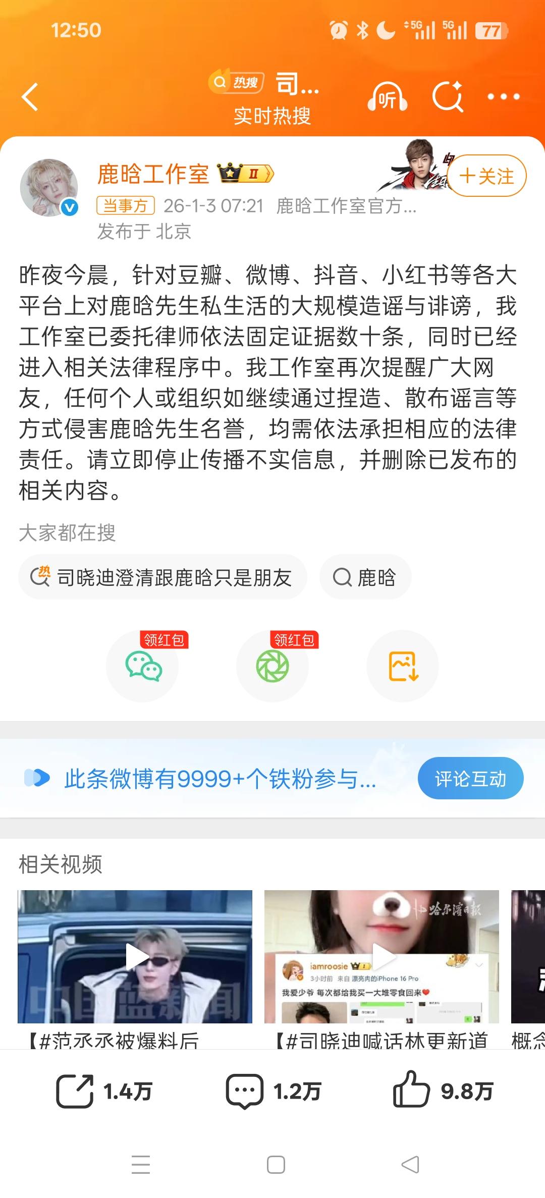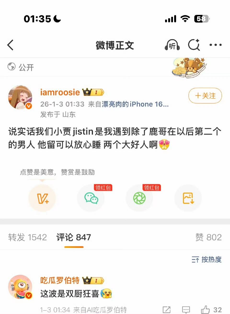 新年第一瓜!鹿晗和女网红在一起过!? 女网红(iamroosie)突然就发了一条和别人共枕的照片 照片一发,好多人就认出来是鹿晗 关键是这个女网红似乎长期混迹男明星圈子,公开的、没公开的男明星男友数不胜数 所以,她的可信度还是挺高的 包括看了一些对比图,你别说你别说,真的像 不过鹿晗工作室也发了一条声明 大家觉得是真是假呢? 现在就感觉就好像当初小g娜爆料吴某凡,都大半张脸爆出来了,还是各种人说不是吴某凡 只不过今时不同往日,以前网友是真的信人设,现在经过这么多遭,信人设的网友只会被人家卖保险 如果是真的,说实话,也挺符合鹿晗这几年的行事风格的 一直喝酒,和各种网红聚会(这个以前有过狗仔报道,实锤) 当时就有人质疑鹿晗怎么这么频繁的跟网红聚会 鹿晗官方回复就只是朋友普通聚会 反正也就那么过去了 但如果还有这么一遭的话,嗯,更符合逻辑了 一般明星都是明星圈子,网红都是网红圈子,明星找网红属于降级了,一般没啥原因不会降级的 就比如angelababy,以前都是和杨幂,张大大一块玩,一出事儿马上跑到网红圈了