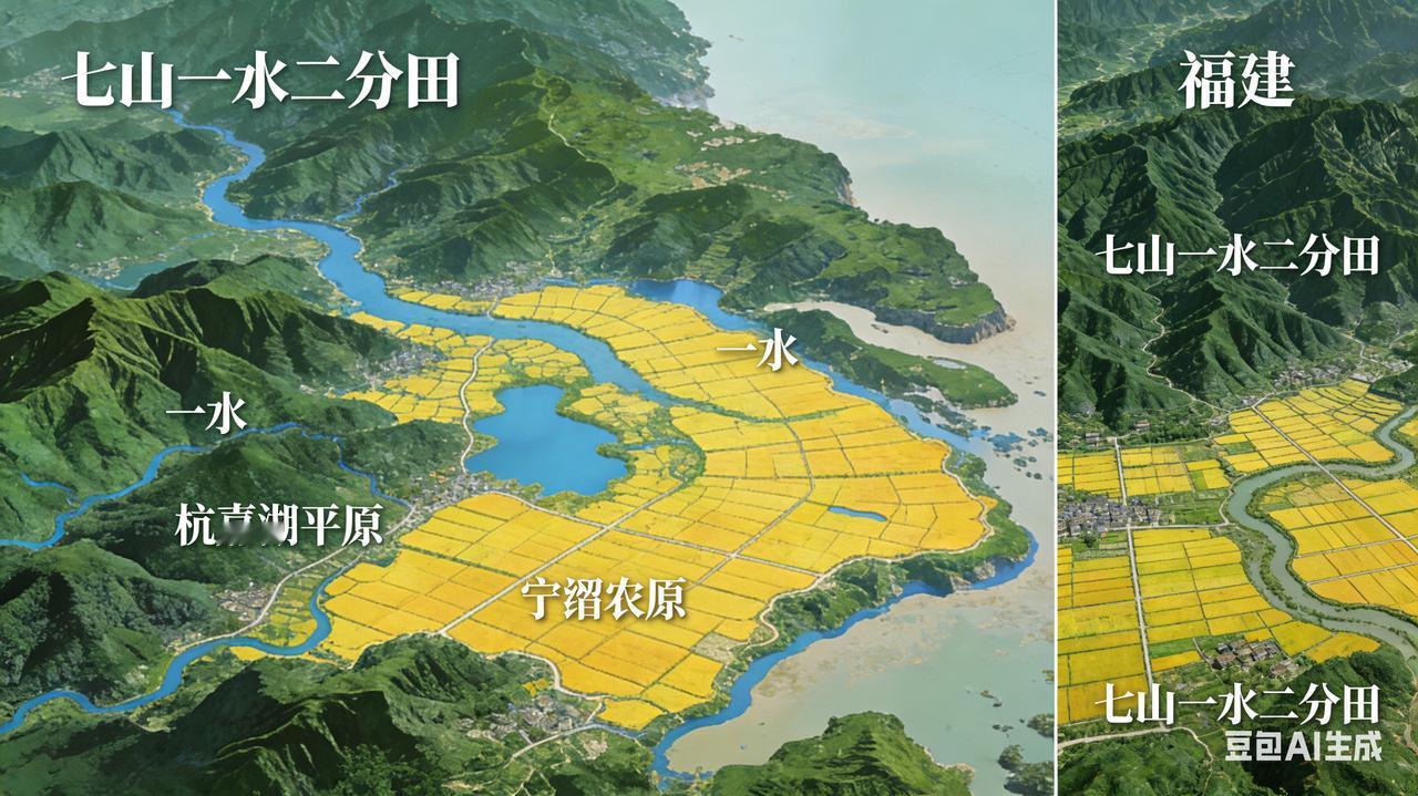 福建是“八山一水一分田”,浙江是“七山一水二分田”,主体是都是山地、丘陵,沿海地区有一些平地,浙江比福建多的一分田,就是长江和钱塘江冲出来的杭嘉湖平原。