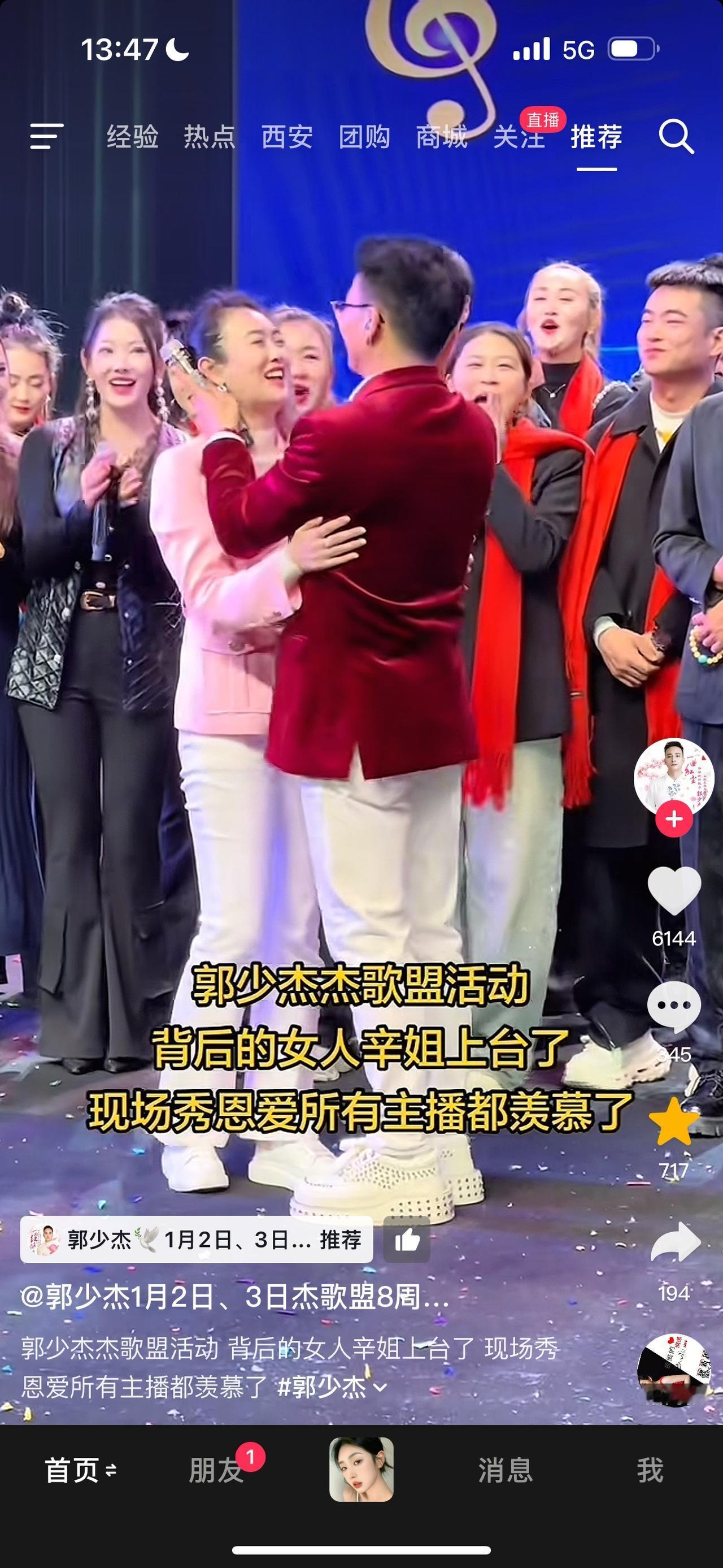 歌手郭少杰办八周年生日庆祝活动,在大庭广众的舞台上,在众人的目光里,郭少杰和妻子拥抱相亲,是多么感人,也是多少人羡慕的场景,实为难得。