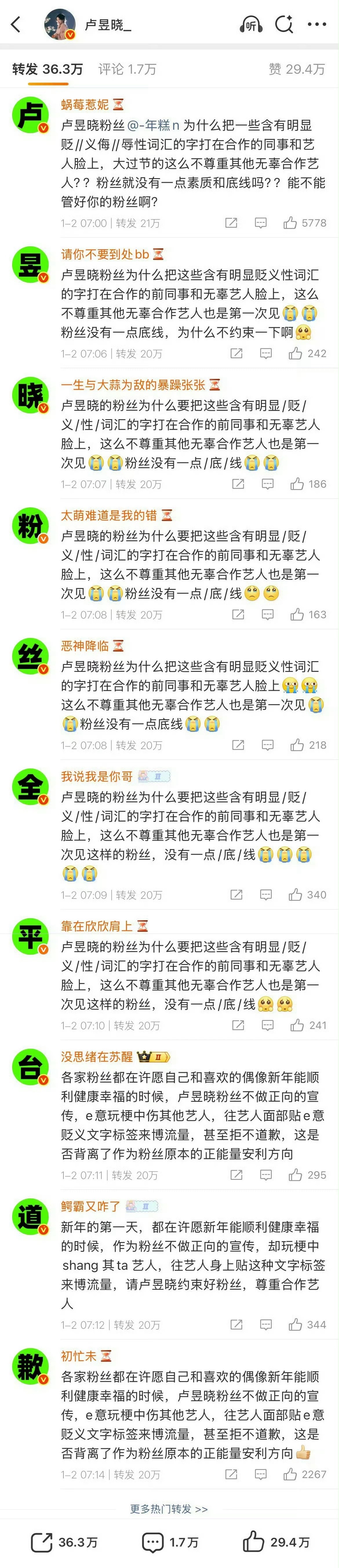 看不下去了,大过年的卢昱晓粉丝这是要干嘛?给虞书欣王星越脸上贴的什么字?还有这