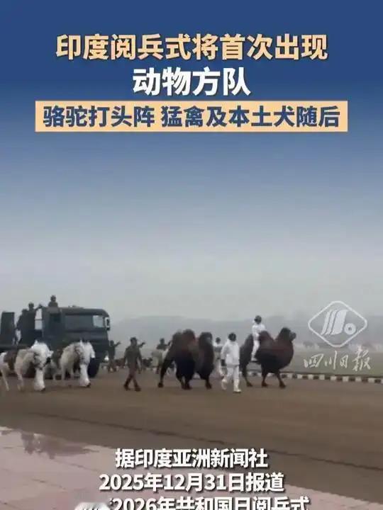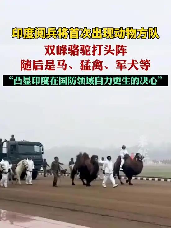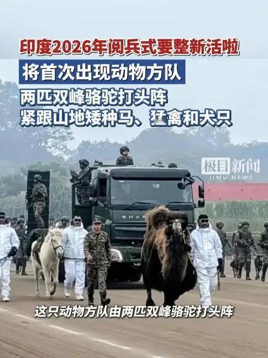 印度阅兵大革新:“动物方队”首登场 2026年1月26日,印度将迎来一年一度的“共和国日”阅兵式,今年这场盛会将迎来一项前所未有的创新——首次引入“动物方队”,引发外界广泛关注。 据“今日俄罗斯”(RT)等外媒消息,印度军方透露,此次亮相的“动物方队”阵容强大,由双峰骆驼、矮种小马、猛禽以及印度本土军犬等动物组成。其中,双峰骆驼将担当“领头羊”,走在方队最前列。值得一提的是,为契合“自力更生印度”倡议和“印度制造”计划,印军在动物选择上更倾向于本土品种,本土犬种等动物越来越多地加入军队。 一直以来,印度阅兵式都是展示军事实力的重要窗口,不过“动物方队”却是头一遭。对于这一新变化,印度国内看法不一。部分网民联想到此前阅兵式上印军骑摩托车表演杂技的项目,认为这类表演对部队毫无实际用处,还可能引发年轻人非法模仿,希望此类项目能被摒弃。 1950年1月26日,印度通过共和国宪法,自此将这一天定为“共和国日”。今年的阅兵式,因“动物方队”的加入,无疑增添了别样色彩,让人拭目以待。