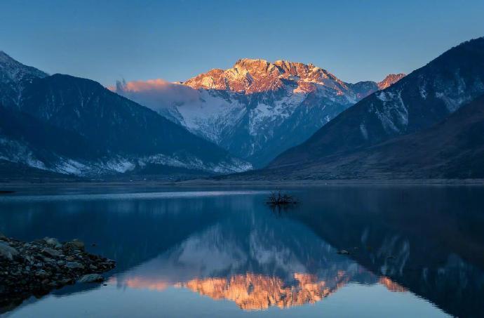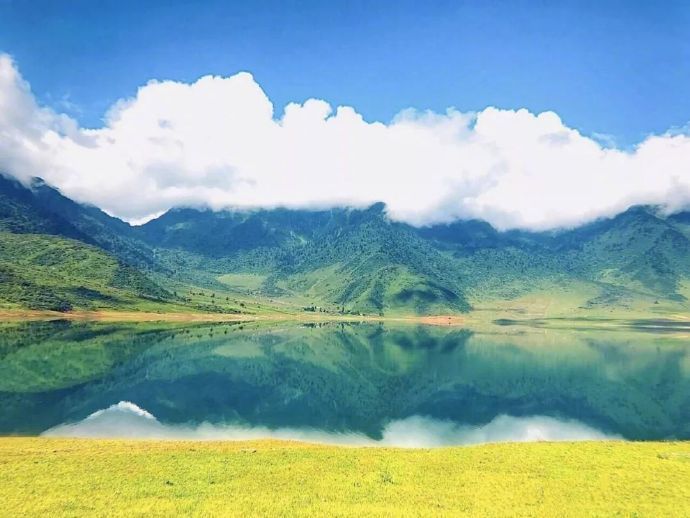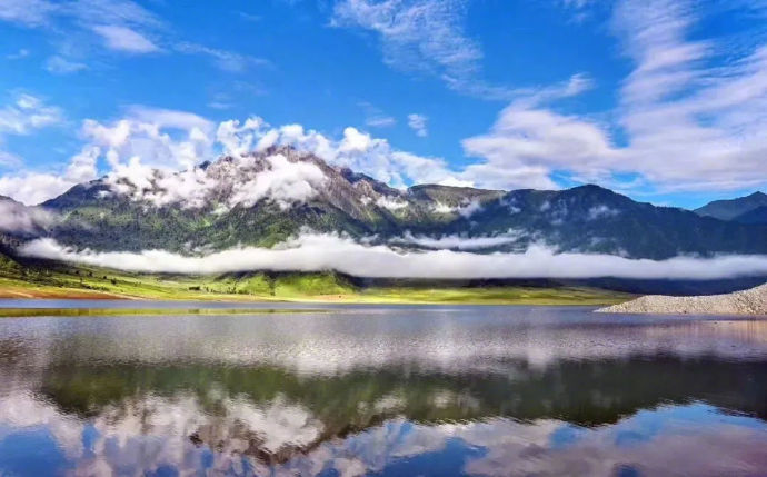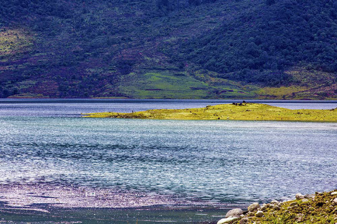 四川·冶勒湖|湖光山色、湖水湛蓝四周有原始森林,有雪山倒映,有大片草甸 ,草甸上还有簇簇杜鹃和野花 ……