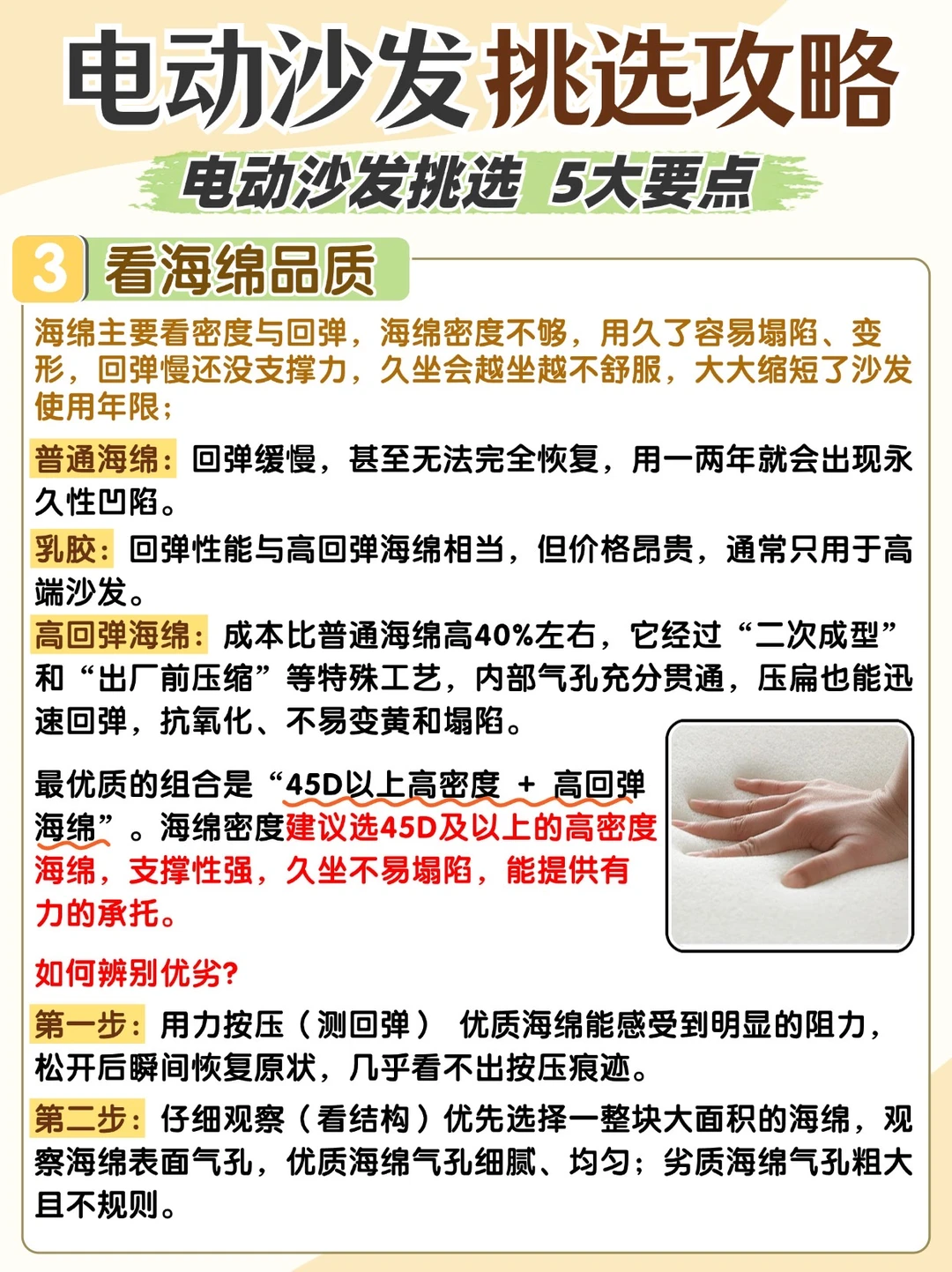最优质的组合是“45D以上高密度+高回弹海绵”。支撑性强,久坐不易塌陷,能提供有力的承托