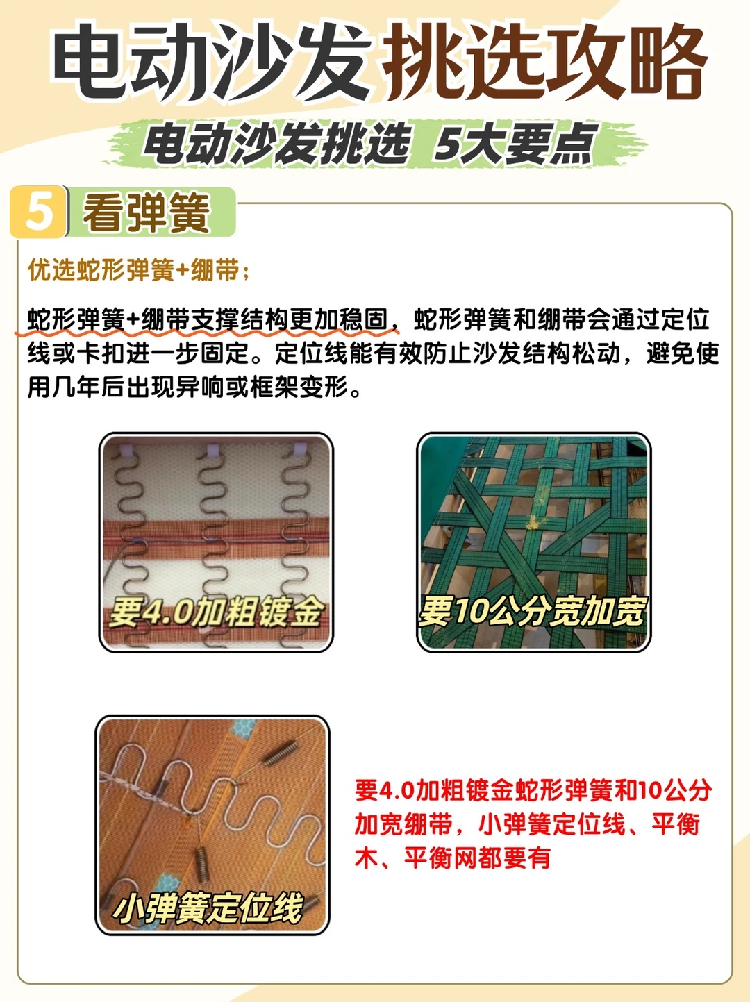 优选蛇形弹簧+绷带支撑结构更加稳固,蛇形弹簧和绷带会通过定位线或卡扣进一步固定。定位线能有效防止沙发结构松动,避免使用几年后出现异响或框架变形