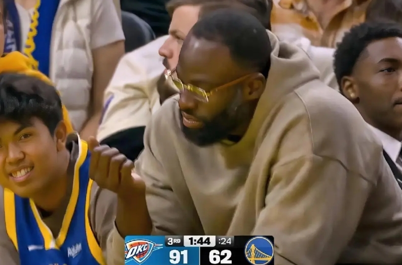 但即便如此,当比赛打成这个样子时,还是让人沮丧的,科尔一筹莫展的表情,替补席的追梦已经不想关注场上的赛况了,库里跟助教聊天。