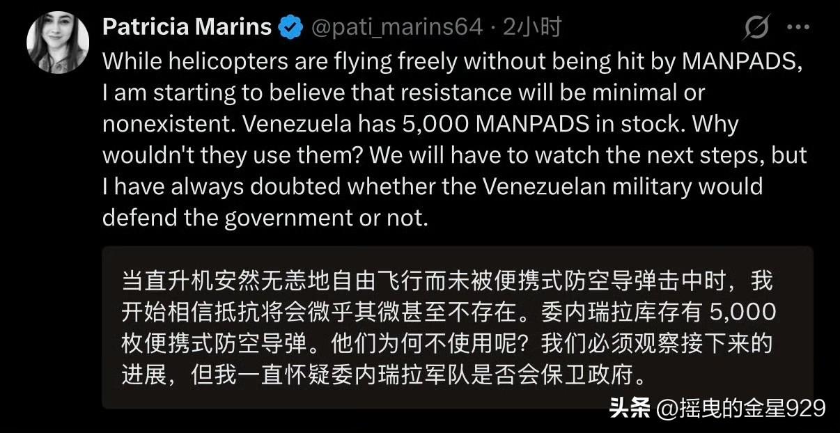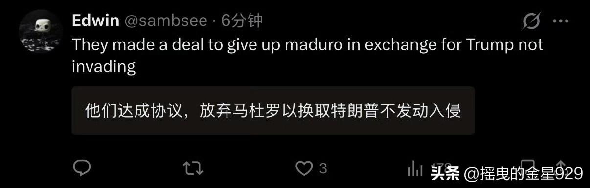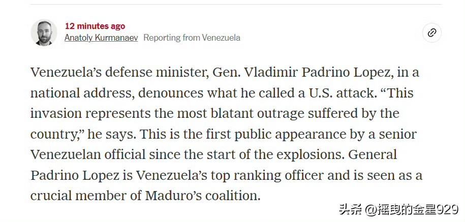 马杜罗被抓?美国总统特朗普发文表示,“美利坚合众国成功对委内瑞拉及其领导人尼古拉斯•马杜罗总统发动了大规模打击,马杜罗和他的妻子已被俘并驱逐出境。” 特朗普强调,此次行动与美国执法部门协同进行。并表示,会在当地时间3日上午11点将在海湖庄园举行新闻发布会。详情敬请期待, 最后还附上其常用语——感谢您对此事的关注! CBS报道称,是美军三角洲特种部队精锐小队俘获马杜罗。 委内瑞拉国防部长弗拉基米尔•帕德里诺•洛佩斯将军在全国讲话中谴责美国的入侵袭击行为——此次入侵行为,代表着委内瑞拉所遭受的最明目张胆的暴行。让我们不要屈服于敌人试图散播的恐慌情绪,我们将取得胜利,祖国万岁。 帕德里诺•洛佩斯将军是委内瑞拉的最高将领,并被视作马杜罗联盟中的关键成员。 不过,拉美媒体人和网友普遍认为,马杜罗是被卖了。