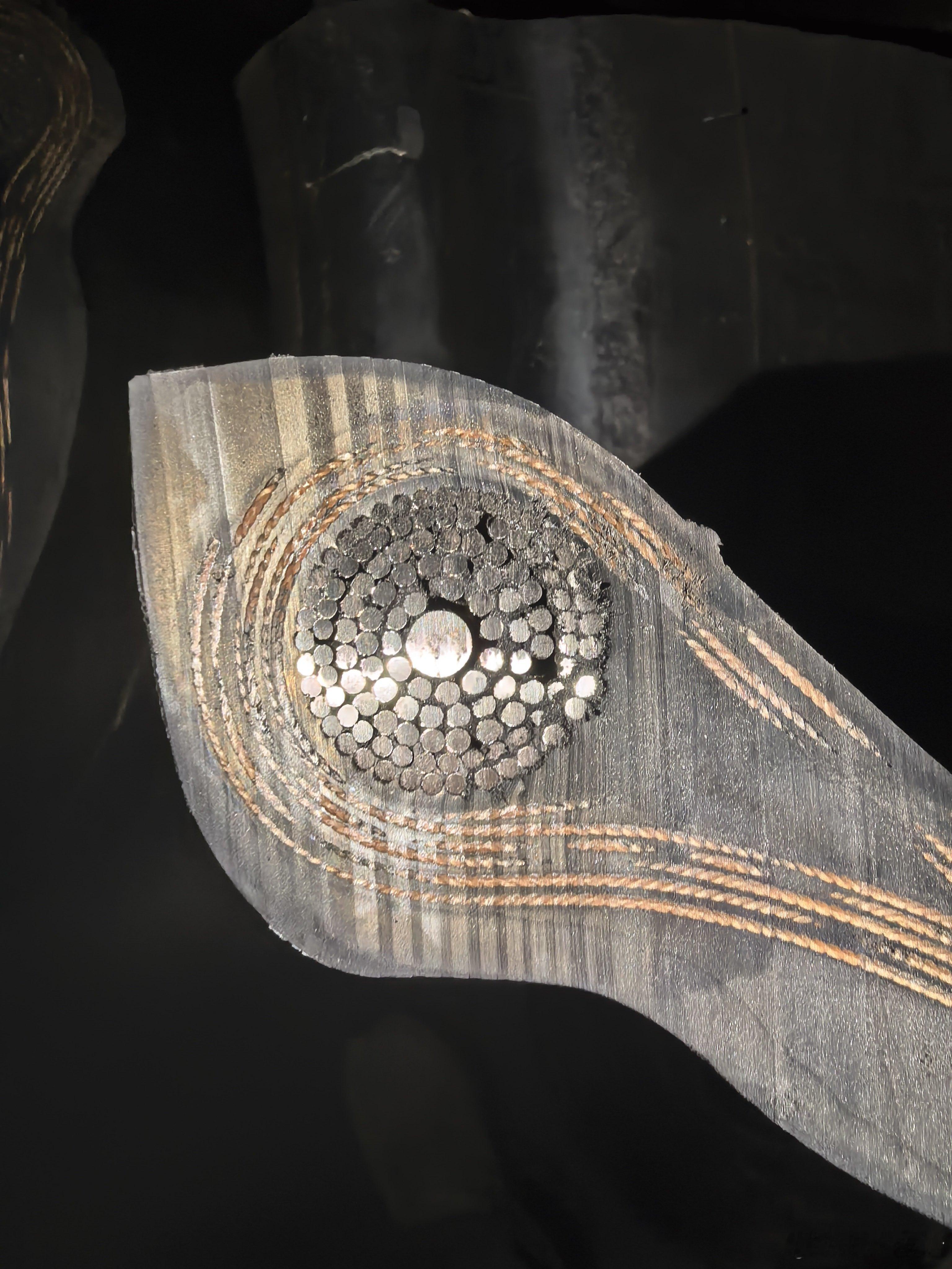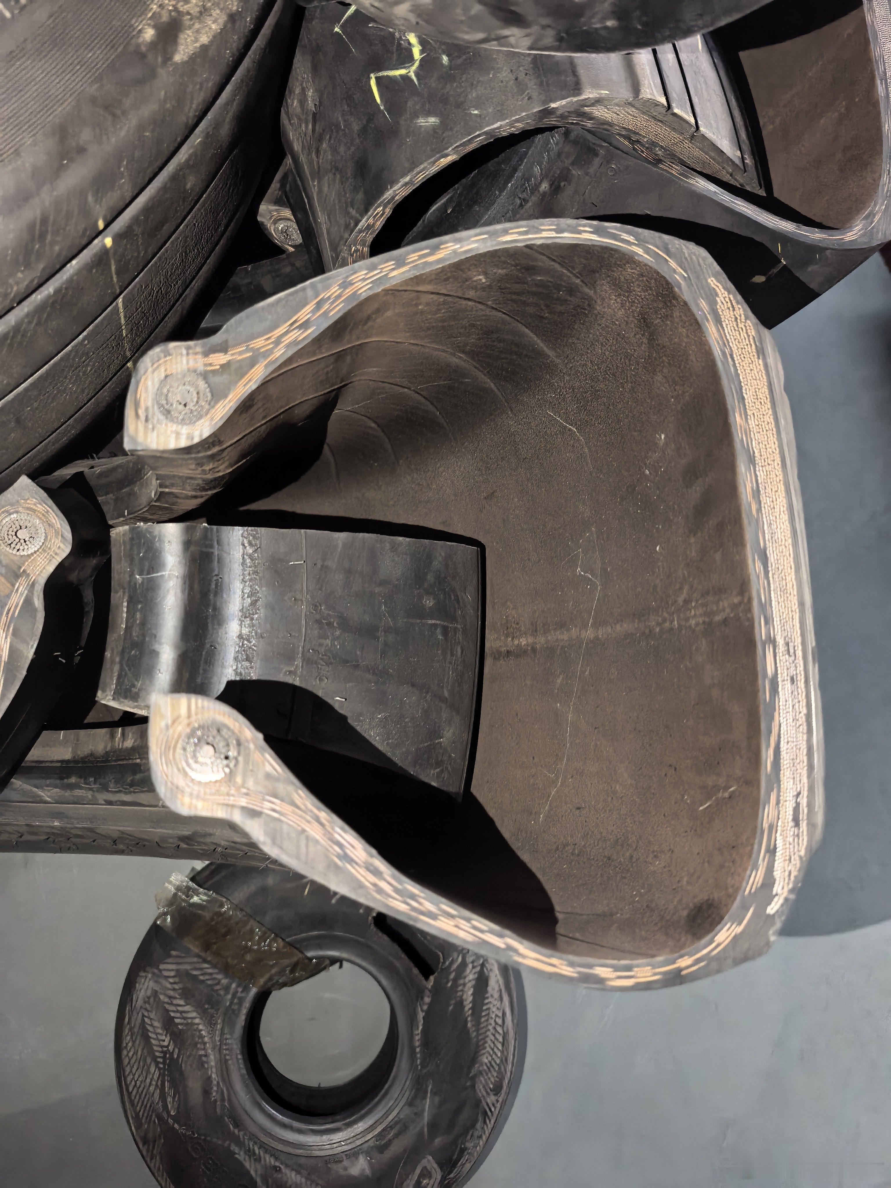 飞机轮胎目前是米其林一家独大,基本垄断了喷气客机领域切开轮胎来看的话,能看到致密的金属和尼龙线,这不仅是加强轮胎的重要手段,也为轮胎的磨损更换提供辅助指示。