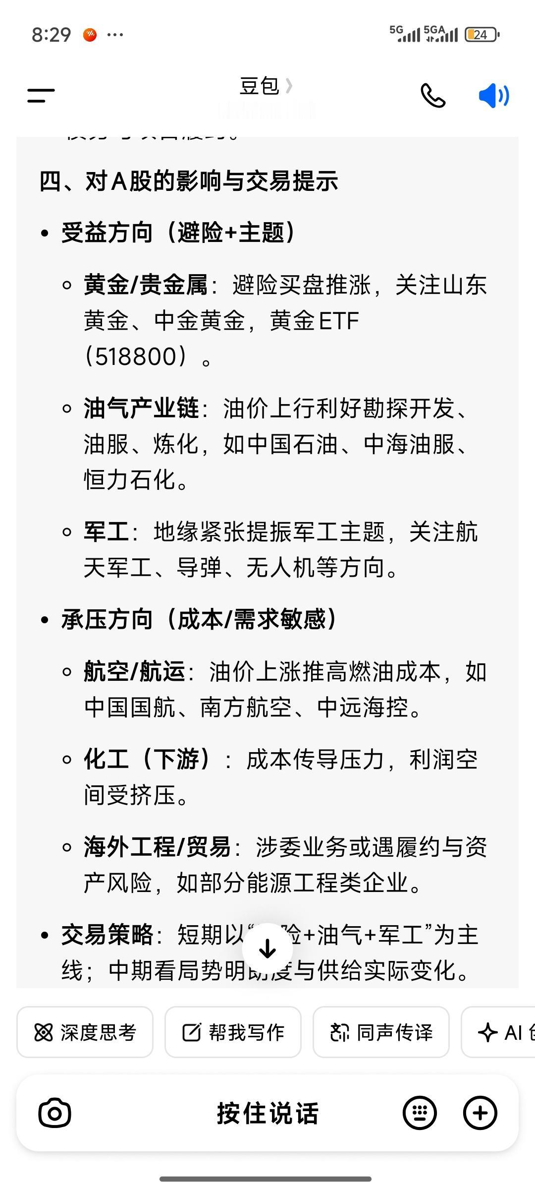 今晚突然传出一则重磅消息,美国骤然发动空袭针对委内瑞拉,还成功抓捕了委内瑞拉总统马杜罗及其妻子,并打算将他们带回美国受审。这一重大事件,必定会对下周的A股造成巨大影响。我让豆包分析并列出了会受影响的A股上市公司。其中,黄金、军工、油气能源板块无疑会从中获利!委内瑞拉战局 委内瑞拉的困境 委瑞瑞拉局势 南美委内瑞拉 阿根廷委内瑞拉 守护委内瑞拉 智利委内瑞拉