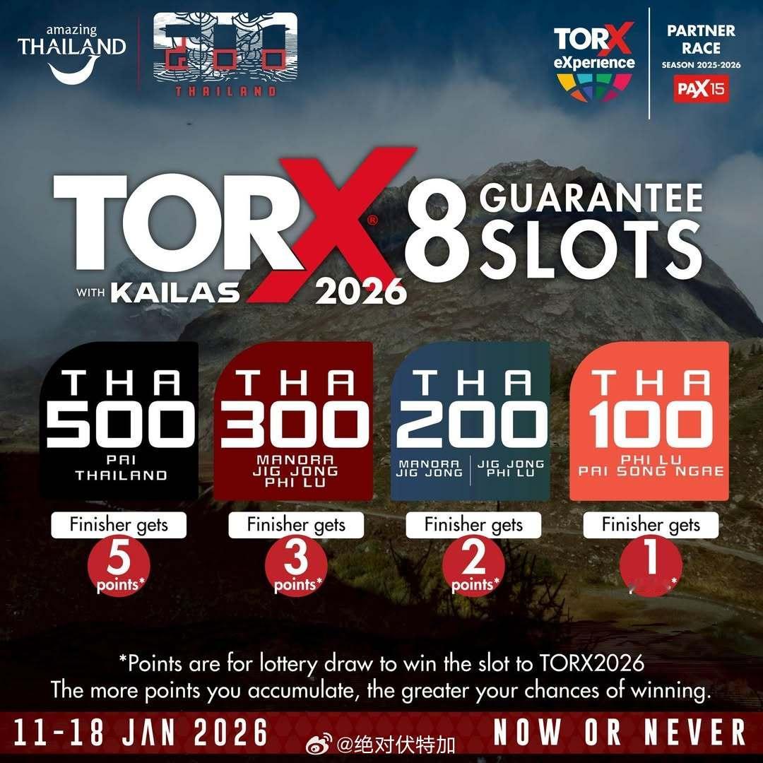 才知道有这么个 500 Thailand 的泰国超级越野跑赛事。分100/200/300/500四个组别,500公里组168小时关门(1月11-18日)。只发这个组的相关装备,其中包括洗漱用品这赛事比较吸引是能提供巨人之旅积分(用来抽签)和排名靠前确认名额吧。越野跑 超级马拉松 巨人之旅