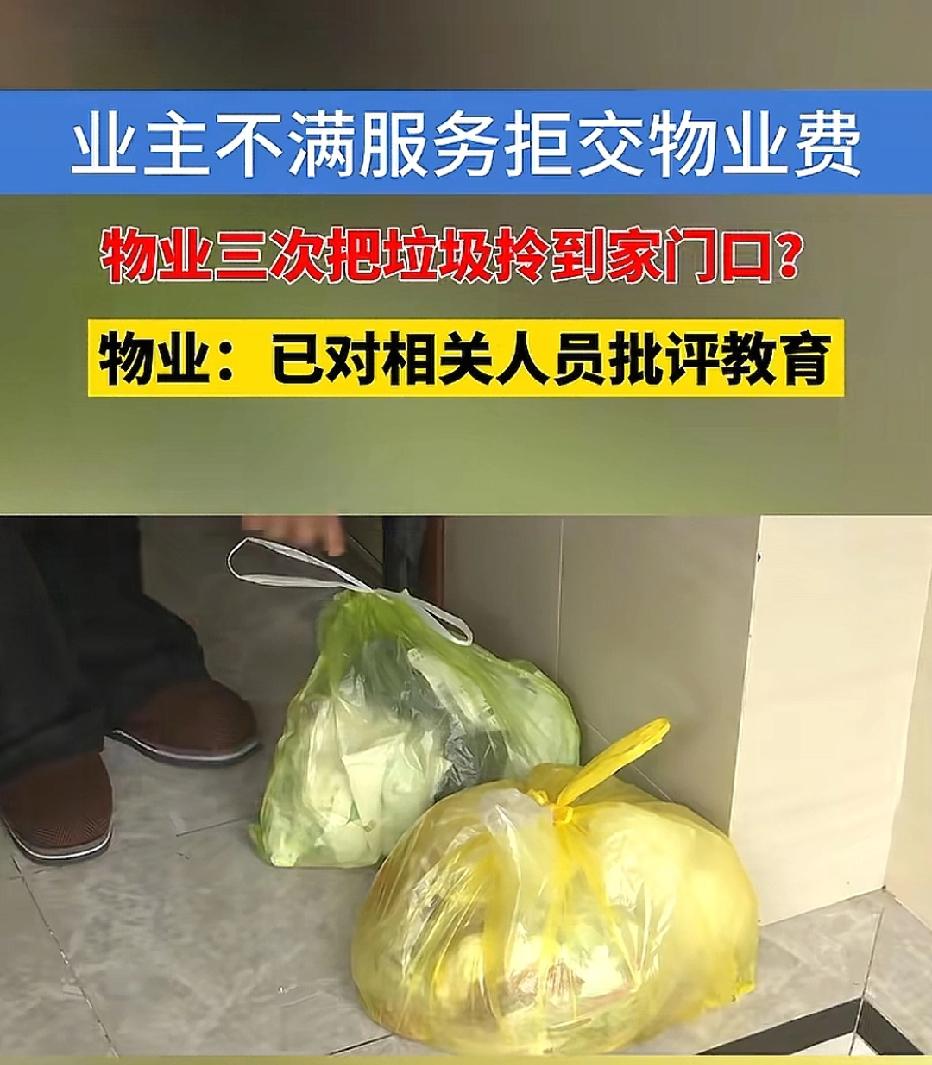浙江杭州,男子欠缴10000元物业费多年,物业上门催收未果,等男子下楼扔个垃圾,不料,物业又把垃圾送回他家门口!物业直言:欠费无权用公共设施!男子家属怒怼:扔垃圾和交物业费是两码事!男子气得直接找记者曝光。 陈先生像往常一样下楼扔垃圾,不过几分钟的功夫,回家开门时却傻了眼。 自己刚扔掉的垃圾袋,被整整齐齐摆在了家门口。 找上门质问物业,对方的回应理直气壮:你多年欠缴物业费,欠费就无权使用公共设施! 这话瞬间点燃了陈先生家属的火气:扔垃圾和交物业费是两码事!凭啥这么刁难人? 一气之下,陈先生直接找来记者曝光,他这物业费自己不交是对的。 在陈先生看来,自己拒缴物业费,根本不是无理取闹,而是物业的服务实在跟不上。 他细数了物业三大缺点:第一,小区外墙污渍斑斑,承诺好的外墙清洗服务,从来没兑现过。 第二,自行车地下车库规划了阳光雨棚,图纸画得明明白白,到最后却落空。 第三,就连安保配置都大打折扣,物业当初承诺安排18名保安,可每到晚上,小区里很难见到几个巡逻的身影。 陈先生觉得物业服务不到位,他不交钱合情合理。 物业对陈先生的做法很头疼,不是没催过费。 工作人员多次上门沟通,但陈先生始终坚持服务达标再缴费。 双方谈不拢,物业便提出走司法程序解决,陈先生一家也表示同意。 可谁也没料到,司法程序还没启动,物业一个举动,彻底惹怒了陈先生。 物业将三次将陈先生丢的垃圾,又放回了他家门口。 陈先生一家觉得自己没交物业费没问题,但物业把自己丢的垃圾,又放在家门口很有问题,于是找到记者反映情况。 但物业负责人却称,首先,陈先生质疑的外墙清洗,其实是全体业主商议后,把预算换成了更实用的非机动车库防滑道改造和园区监控维修,方案和资金流向都公示过。 其次,自行车库阳光雨棚没建,是因为部分业主担心影响采光、有安全隐患,强烈反对才搁置的。 最后,安保说的18人是白夜班总数,夜班是定点值守加动态巡逻,不是没人在岗。 负责人还强调,物业没存在服务不到位的情况。从2023年9月到现在,陈先生总共欠了11005.8元物业费。 物业上门、发微信、打电话反复催缴,都被拒绝了。 更头疼的是,陈先生夫妻多次在公共场合说要“白嫖”物业服务,甚至辱骂物业人员。 就算经过派出所调解,陈先生还是不交物业费,还总把垃圾扔在楼道里。 最终,在记者调解下,双方答应好好协商。 至于,将垃圾丢在陈先生门口,物业已经对相关人员批评教育。 事件曝光后,网友们也吵翻了天。有人站队物业:物业费是小区运营的基础,你不交钱,凭啥免费享受公共服务?垃圾堵门虽不妥,但也是无奈之举。 那从法律角度看,该如何看待此事呢? 业主和物业双方均存在过错。 首先,陈先生若认为物业服务未达标,有权要求物业整改、减免对应费用,但无权长期全额拒缴物业费。 《物业管理条例》规定,缴纳物业费是业主的法定义务,即便物业存在服务瑕疵,也应通过留存证据、申请调解、提起诉讼等合法途径维权,而非以“拒缴”作为对抗手段。 同时,陈先生夫妻在公共场合宣称“白嫖服务”、辱骂工作人员、在楼道堆放垃圾的行为,既违背公序良俗,也侵害了其他业主的相邻权,需承担相应责任。 《民法典》规定,物业催缴物业费必须通过书面催告、申请调解、提起诉讼等合法途径,严禁以停水停电、限制公共设施使用、骚扰滋扰等方式逼迫业主缴费, 物业将垃圾堵门,这做法也不妥当,侵犯了业主的合法权益。 双方都要经过合法合规程序解决矛盾,而不是将问题放大。 对此你怎么看?