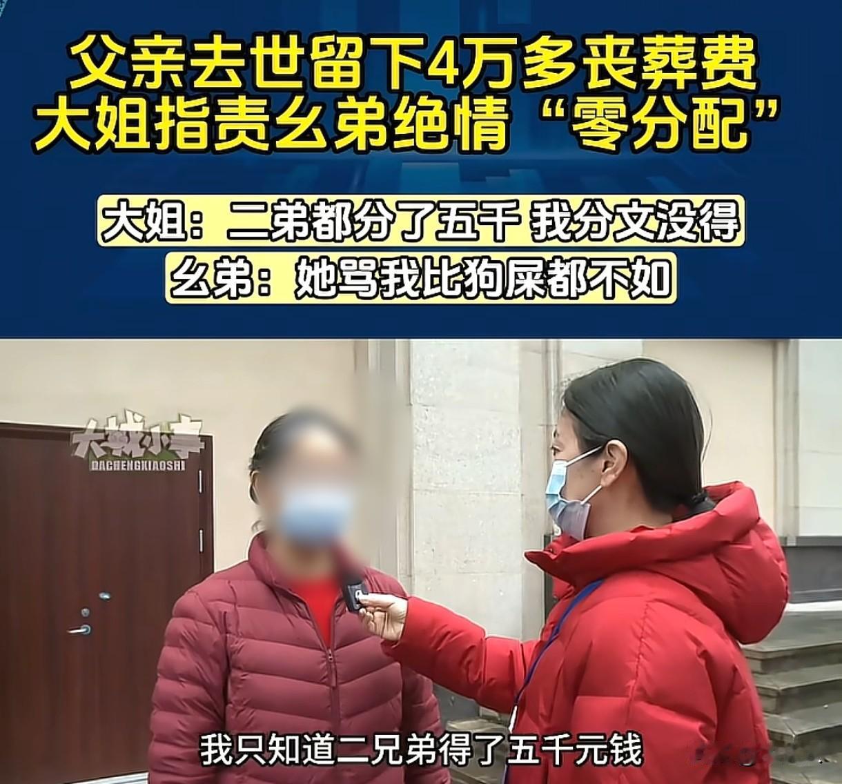 重庆,女子说父亲去世后,留下4万多丧葬费全部在小弟手里,小弟分了5000元给老二