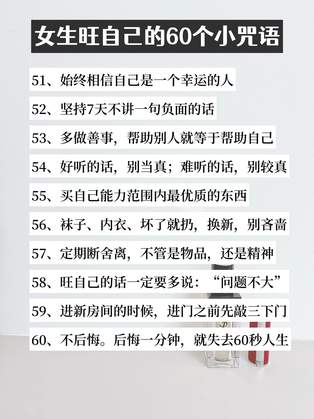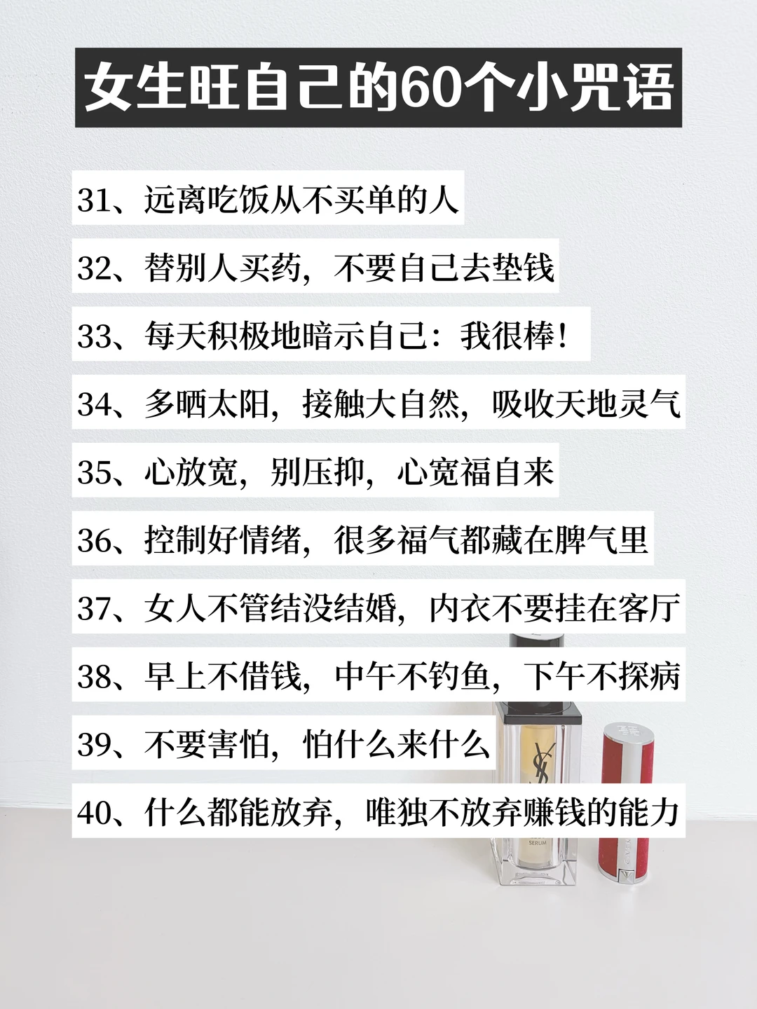 ✅ 提升能量场——运动、读书、学技能,把自己养得光彩照人,好运自然追着你跑!