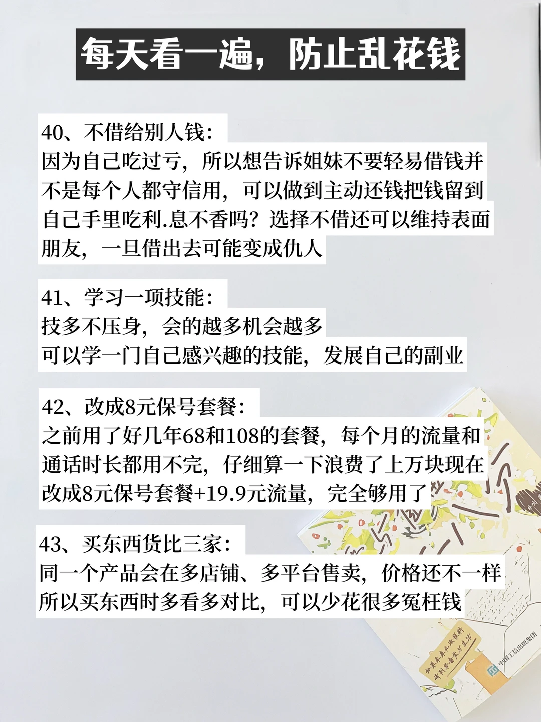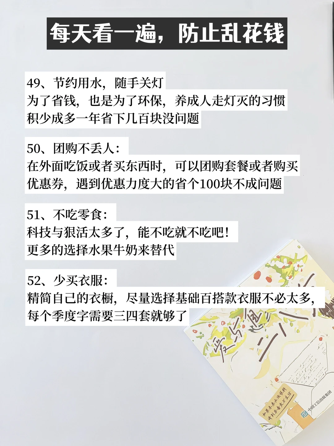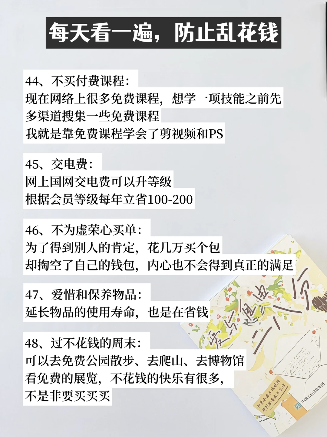 大家好[派对R],这里是爱攒钱爱搞钱的小猫👋 经济下行,作为一个普通的打工族,虽然我们暂时无法迅速提高收入,但养成这些省钱习惯轻轻松松省下一笔巨款。 一起来加油存钱吧[赞R] 谢谢你的time,see you next~ [樱花R][樱花R][樱花R] 我是精简生活,一心搞钱,追求经济独立 持续分享高质量的自我提升|存钱省钱|搞钱技巧 让我们一起成为小富婆,早日退休🎉