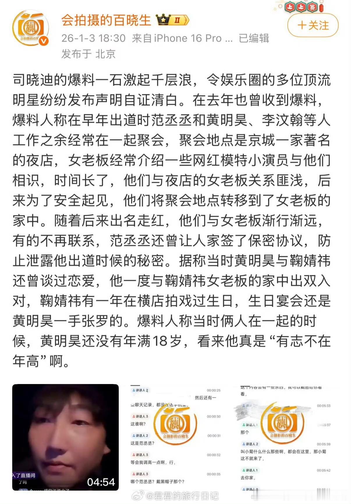 又有瓜,提到了范丞丞黄明昊李汶翰鞠婧祎,什么锤都没有就爆了