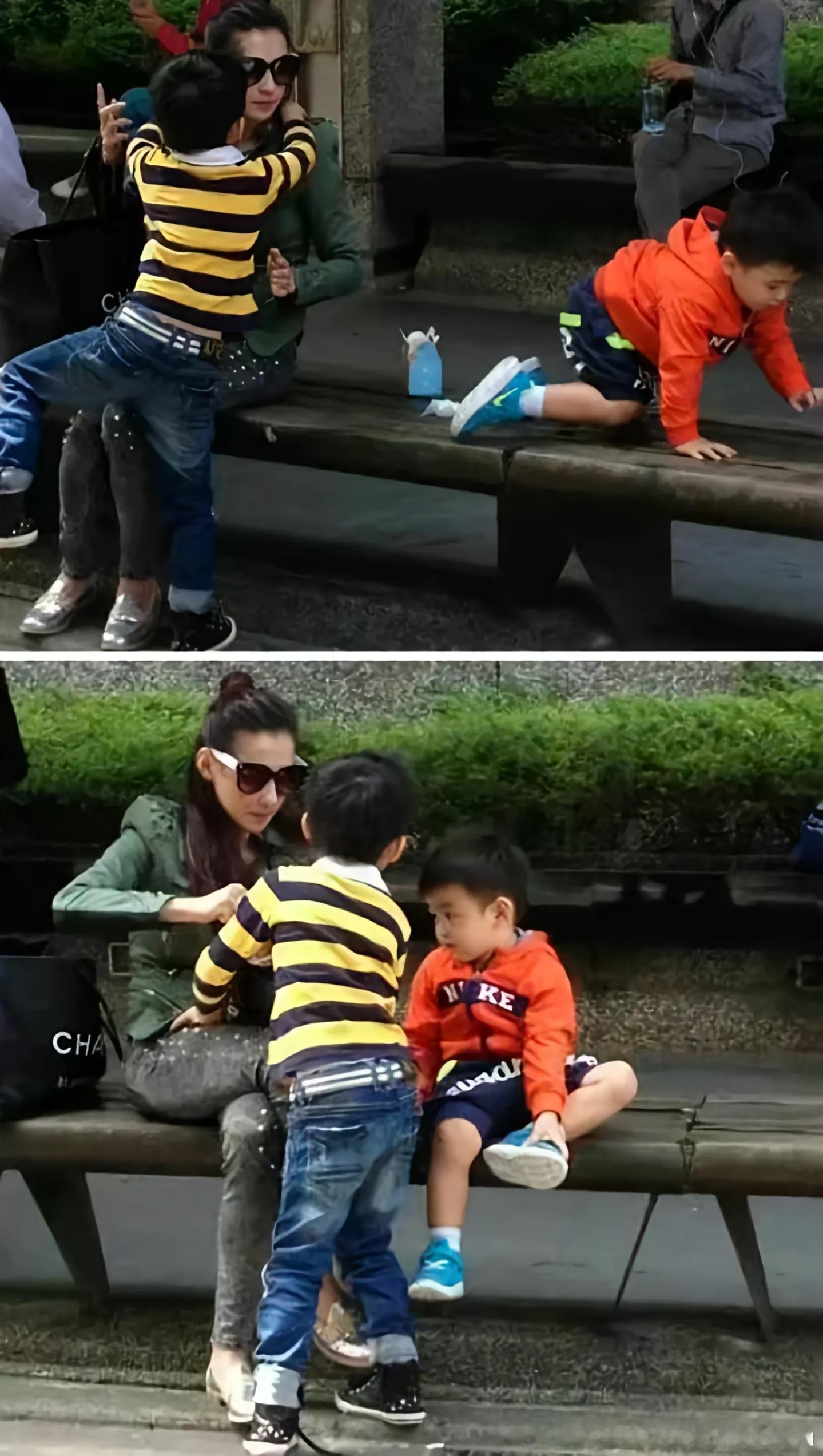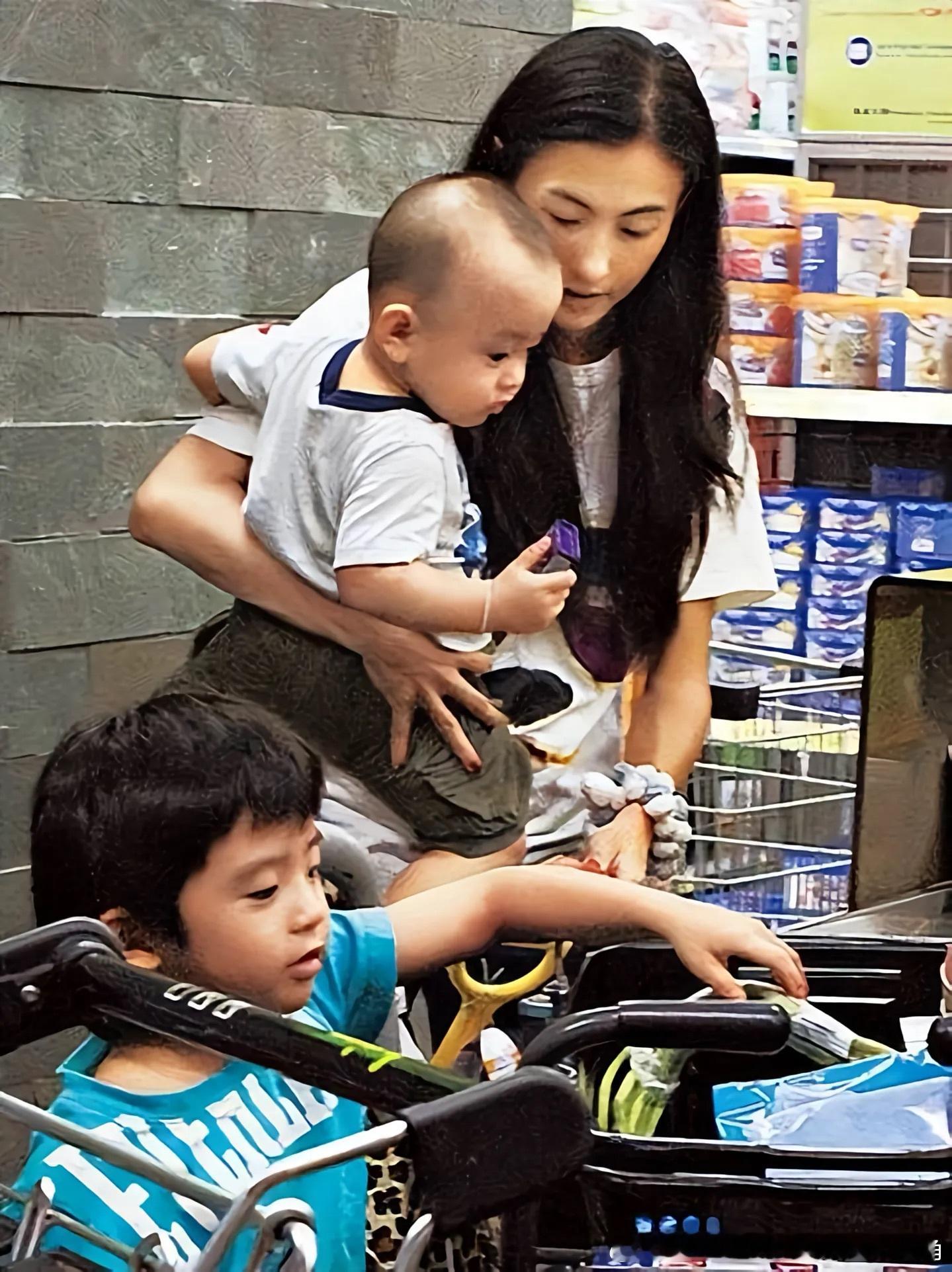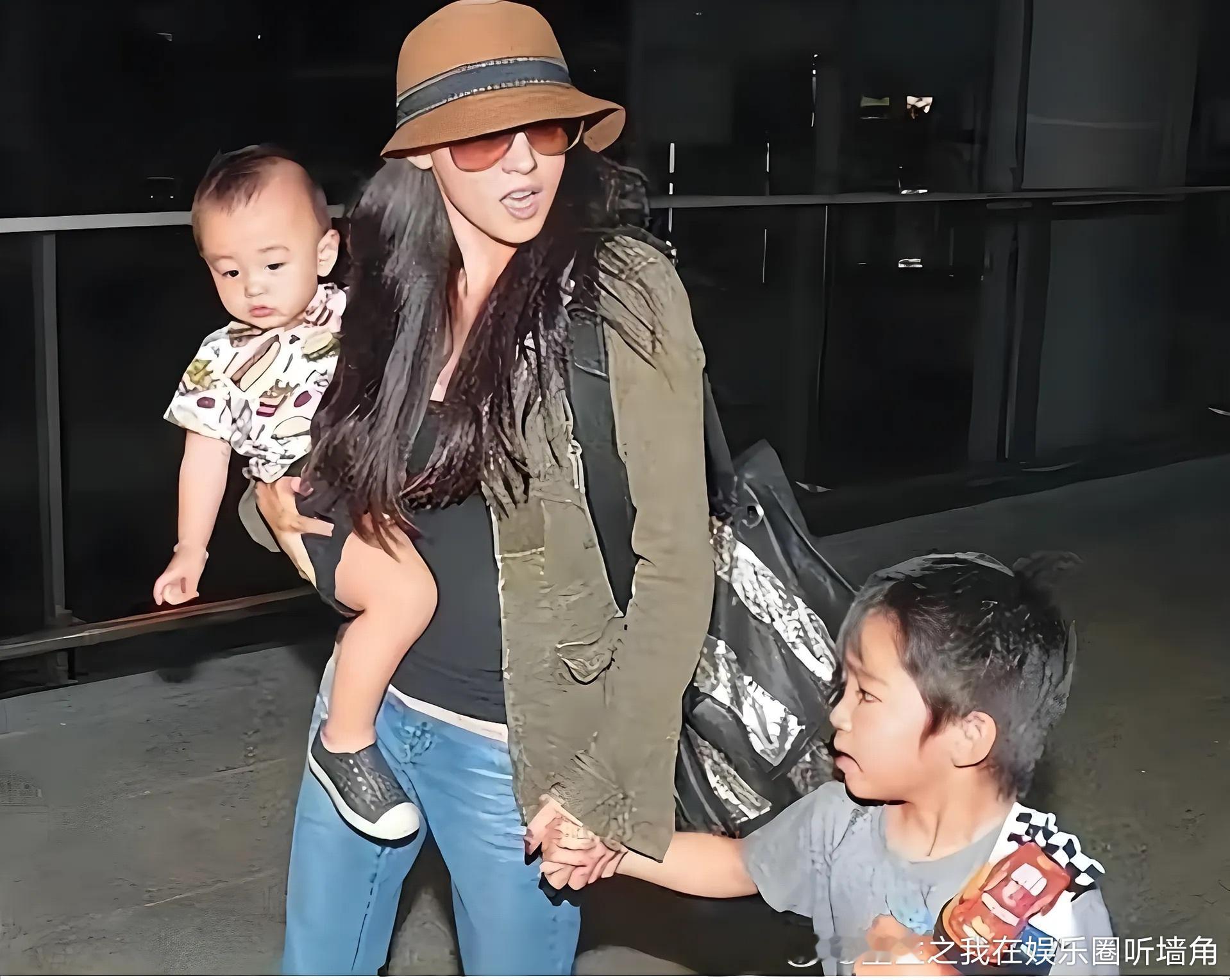 张柏芝独自带两娃,臂力强大一手抱一个。大概只有当了妈妈的人才懂有多累,谢霆锋在干嘛?