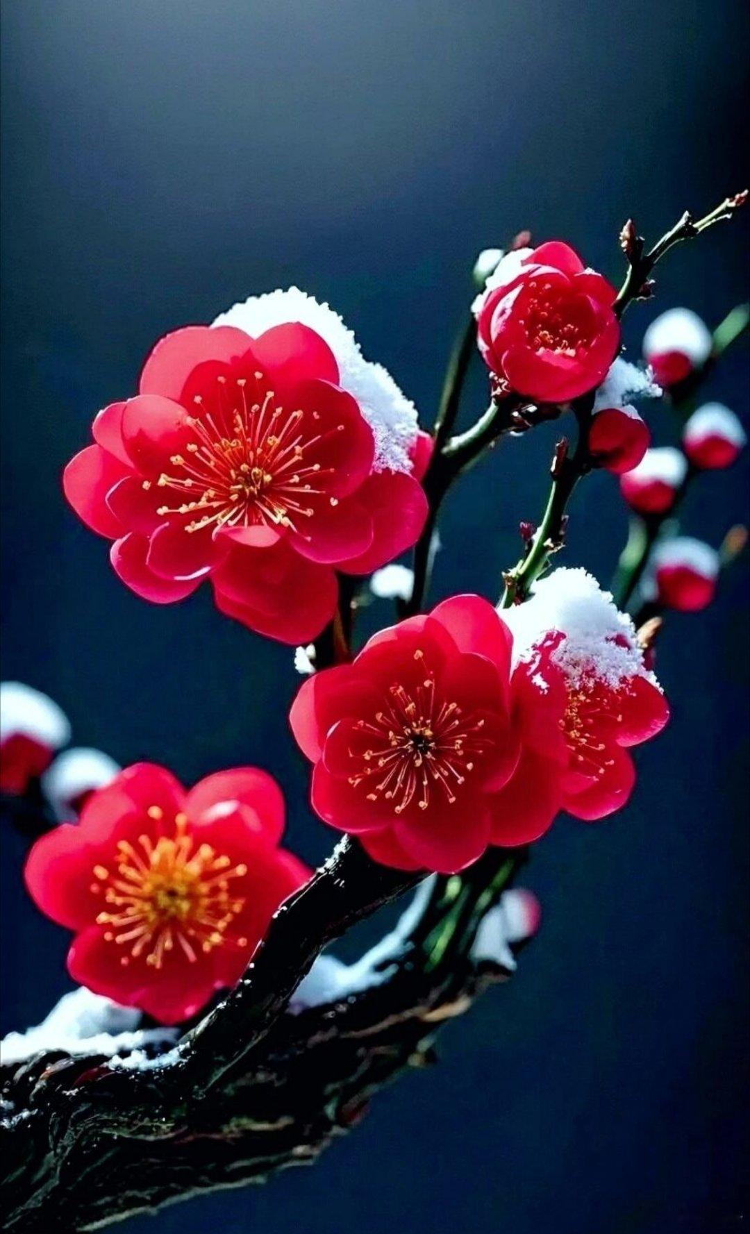 冰魂傲寒风雪中,入世不与俗相同。自古墨客染笔下,雪梅傲骨不随庸!