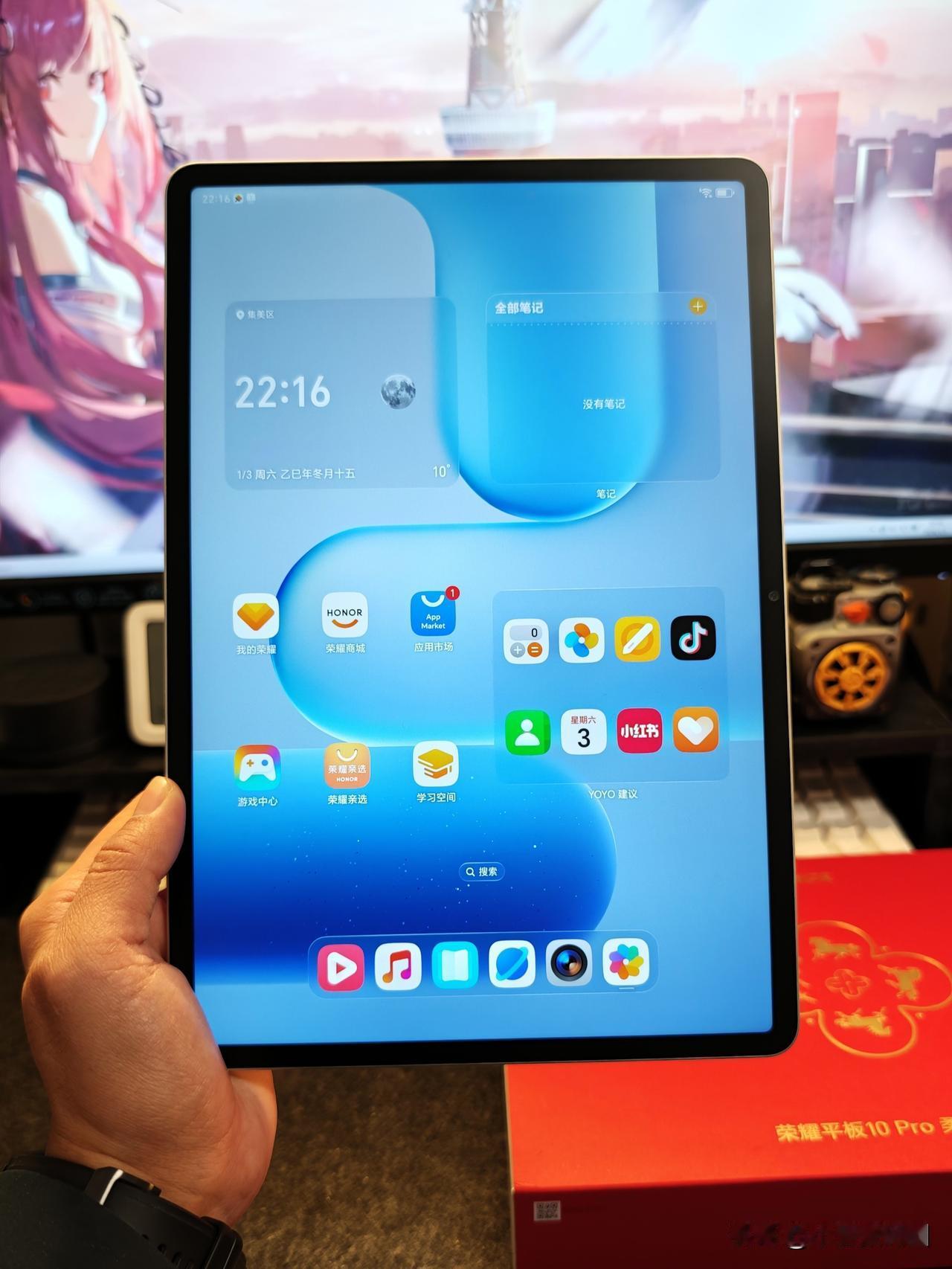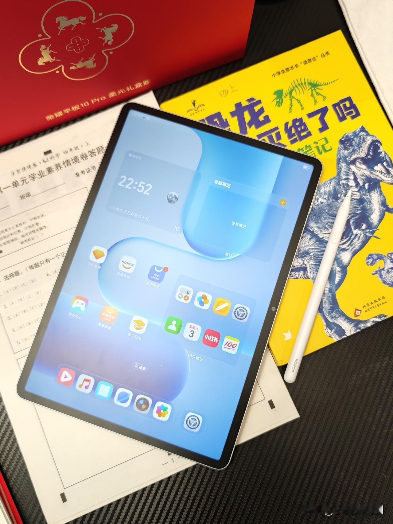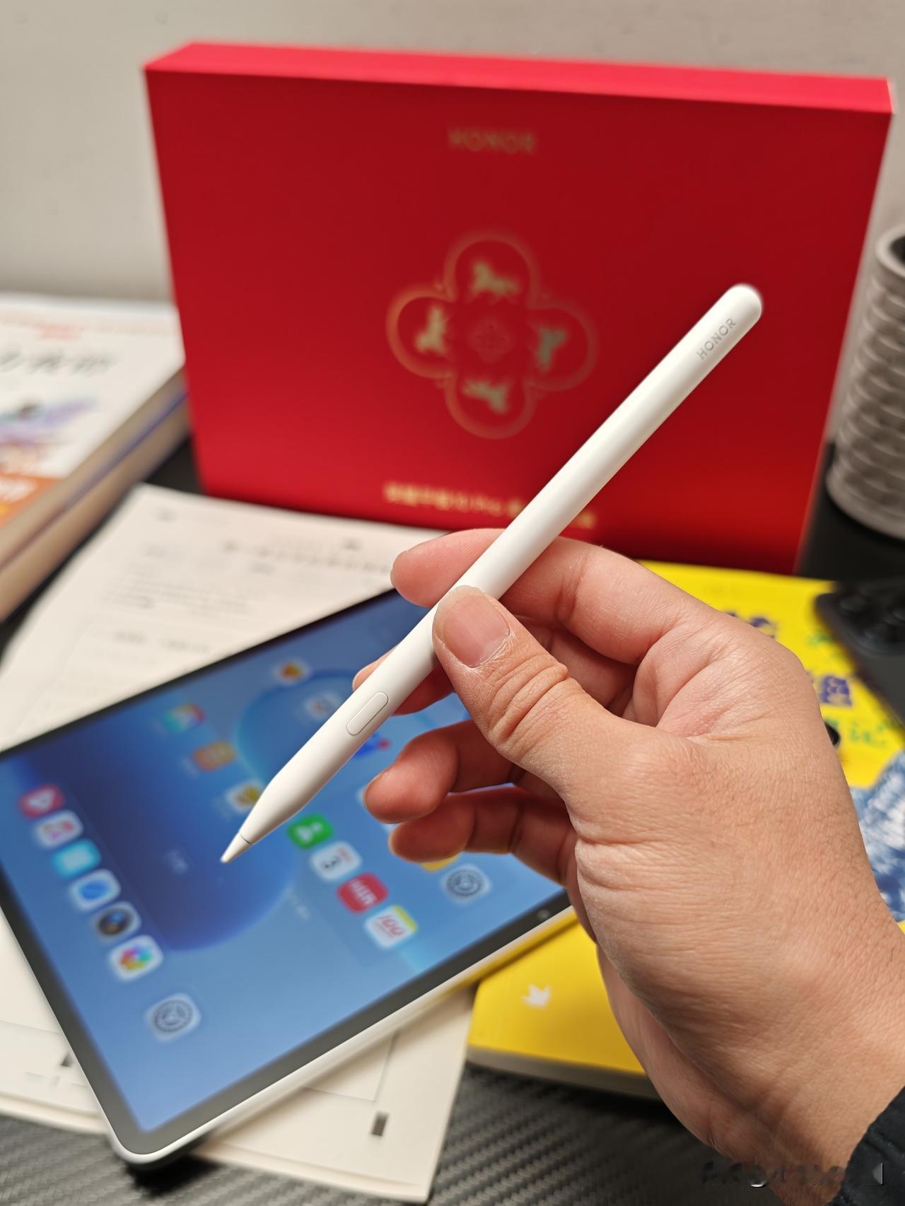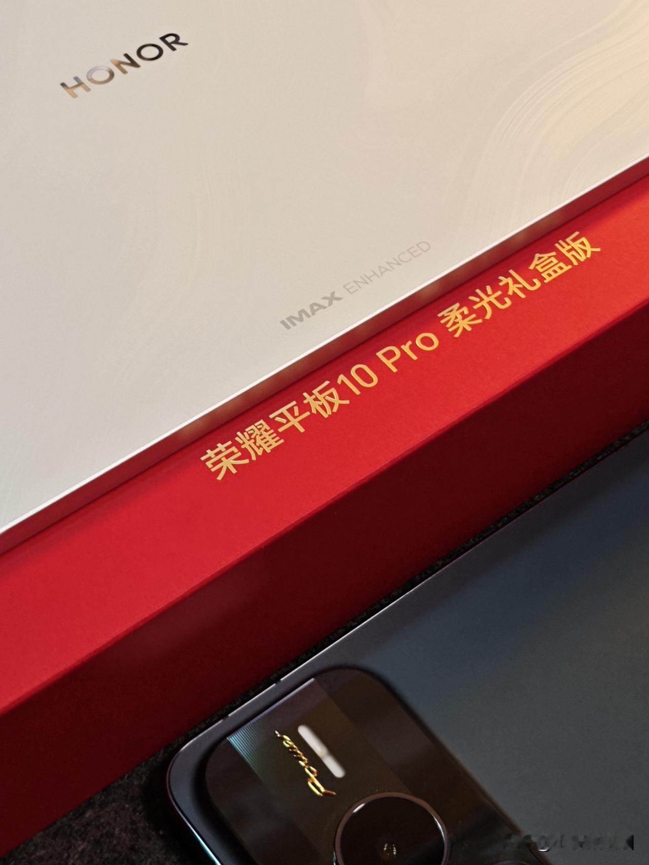 荣耀平板10 Pro柔光礼盒版来了,这包装还挺喜庆的~金属边框超薄设计,里面还有1支新笔——荣耀Magic Pencil4s~