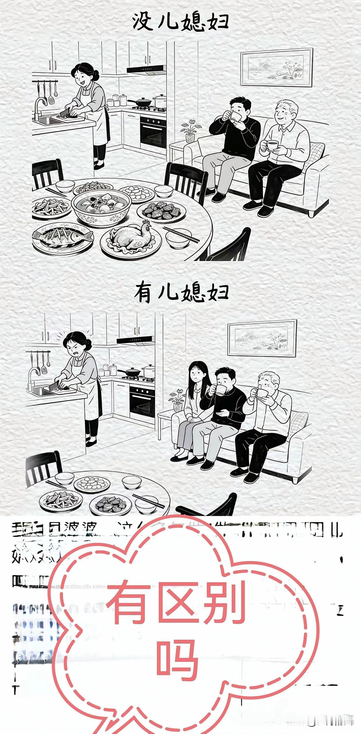 都说娶了媳妇添帮手 其实是“外甥打灯笼——照旧” 没儿媳妇时 婆婆在厨房“孤军奋战” 锅碗瓢盆敲得震天响 爷俩却在客厅“闲云野鹤” 一杯茶喝出神仙滋味 有了儿媳妇 本以为能“众人拾柴火焰高” 结果是婆婆依旧“手忙脚乱” 儿媳妇反倒成了客厅里的“新座上宾” 和爷俩一起“谈笑风生” 干活的人却始终只有婆婆一个人 婆婆的苦日子何时是个头 以前没有儿媳妇的时候 婆婆干活喜笑颜开 桌上的菜品丰盛 如今有了儿媳妇 婆婆干活愁眉苦脸 桌上的菜品变得简朴 为什么有如此区别 大家知道吗 图源网络 若侵即删