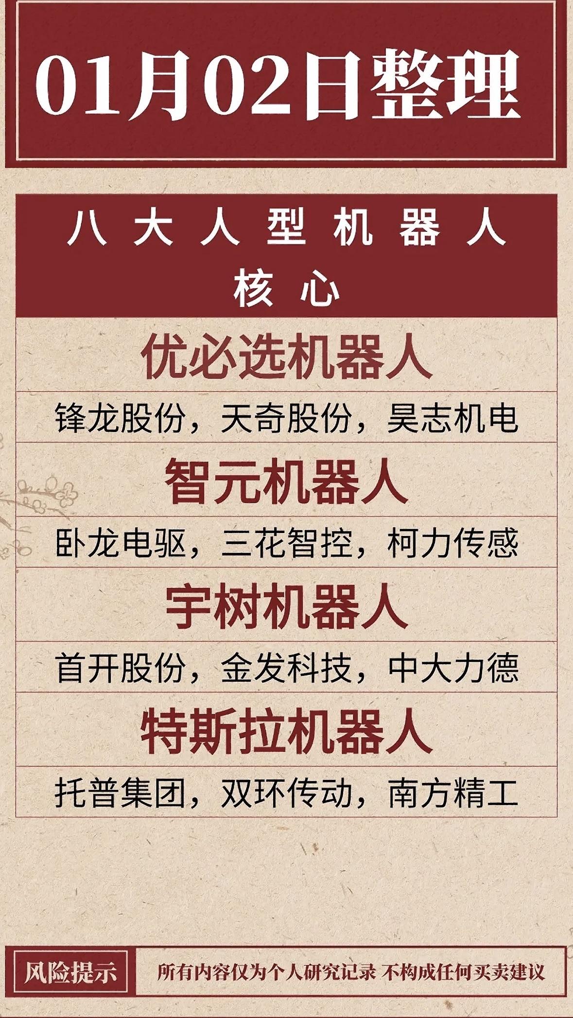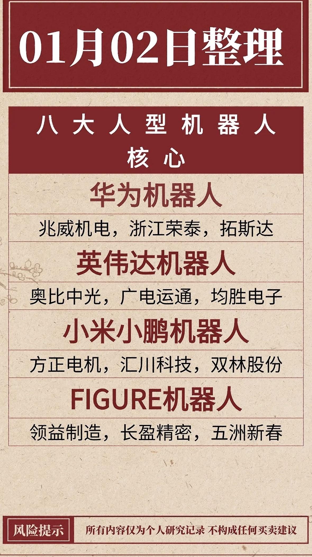 八大人型机器人核心企业盘点, 优选智元宇树特斯拉! "华为小米领衔机器人赛道, 核心供应链受关注, 投资需谨慎自担风险。"
