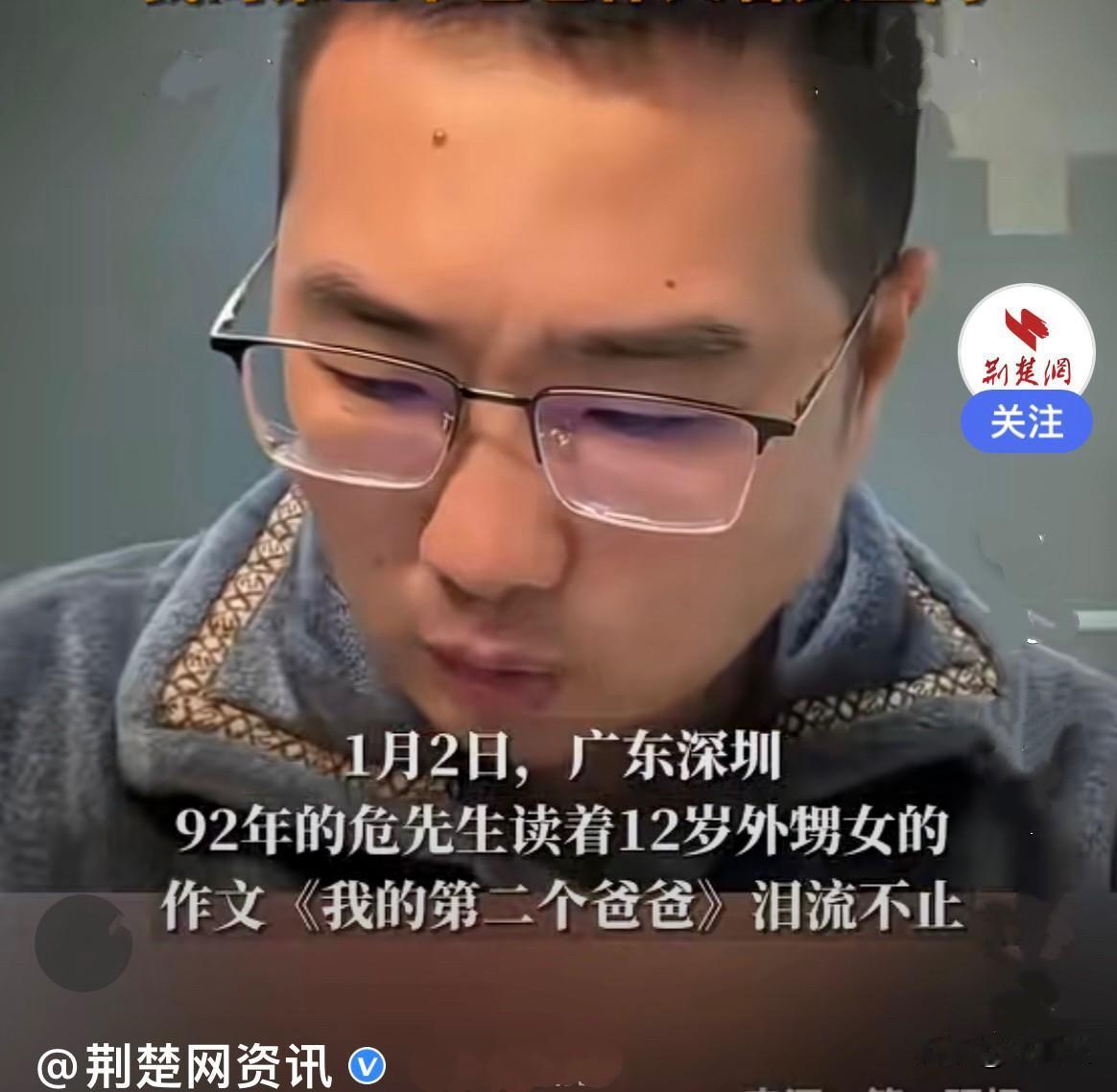 近日,深圳危先生被他12岁养女佳佳的一篇作文《我的第二个爸爸》感动到泪奔…… 佳佳的父亲去年病逝了,妈妈是残疾无力抚养女儿,爷爷奶奶姥爷均已去世,佳佳生活变得很困难,性格也变得孤僻,佳佳的小姨和姨夫依然担当起了佳佳的监护人,把佳佳接到了深圳生活,三口之家变成四口之家,危先生就是佳佳的姨夫…… 佳佳在作文中提到“姨夫的爱没有惊天动地,却藏在陪我打球的汗水里,香喷啧的饭菜里”,“其实在我心里 姨父就是我生命里的第二个爸爸”….. 看得我泪流满面,善良的姨夫,懂事的女孩,遇到这么好的姨夫,也是女孩不幸中的万幸了,这份跨越血缘的深情太感人了,姨父的默默付出让女孩重新绽放阳光笑颜,真的很让人动容…… 危先生说:“我们温暖她,她也温暖着我们,她是我的女儿,我会承担起这份责任”…… 危先生,好样的,一般人做不到…… 善良的中国好姨夫,懂事知道感恩的好孩子,为这一家人点赞[赞]