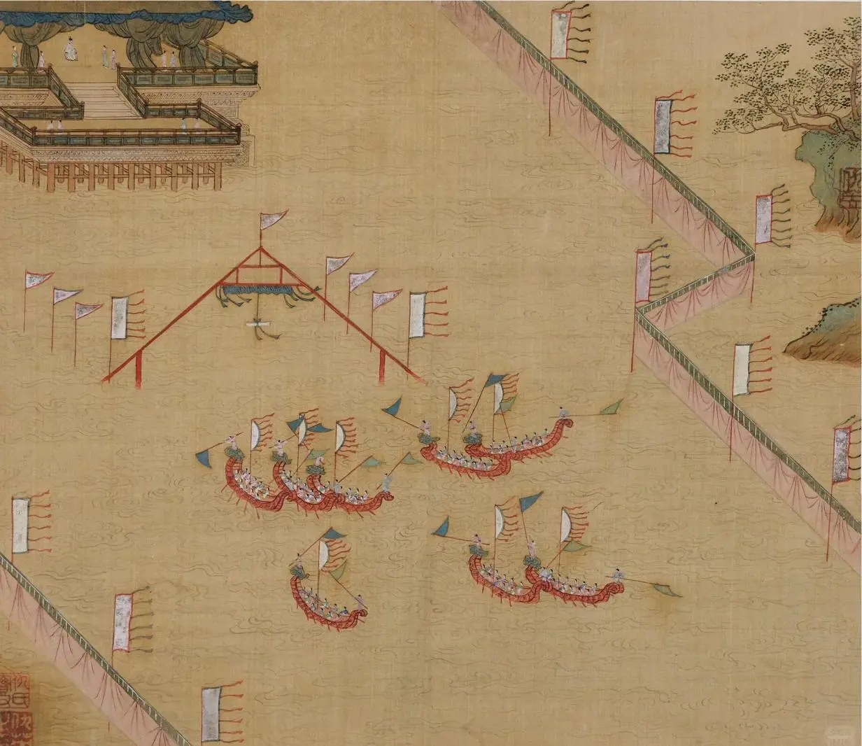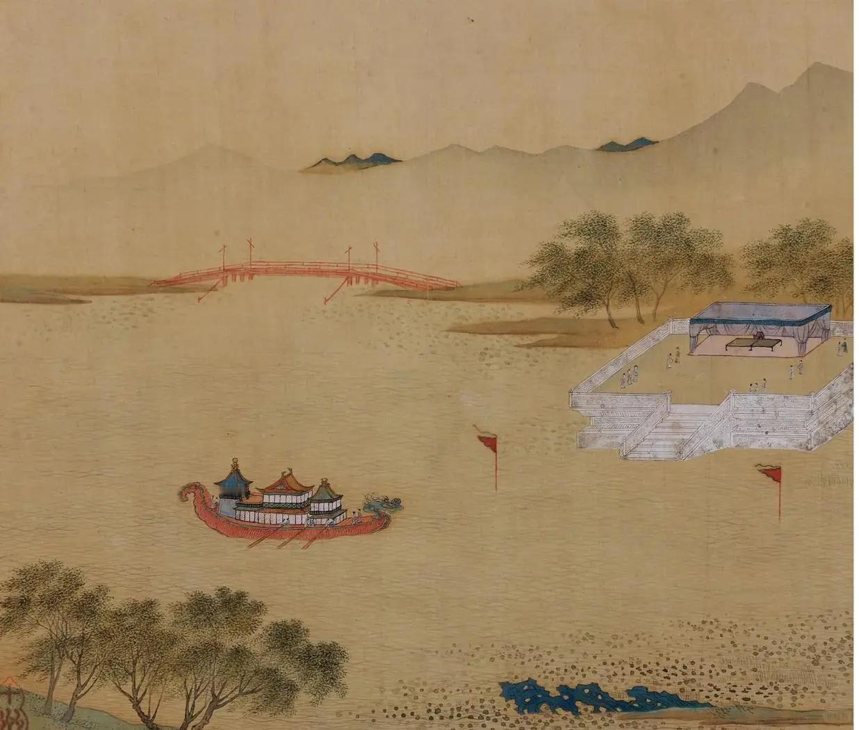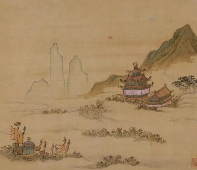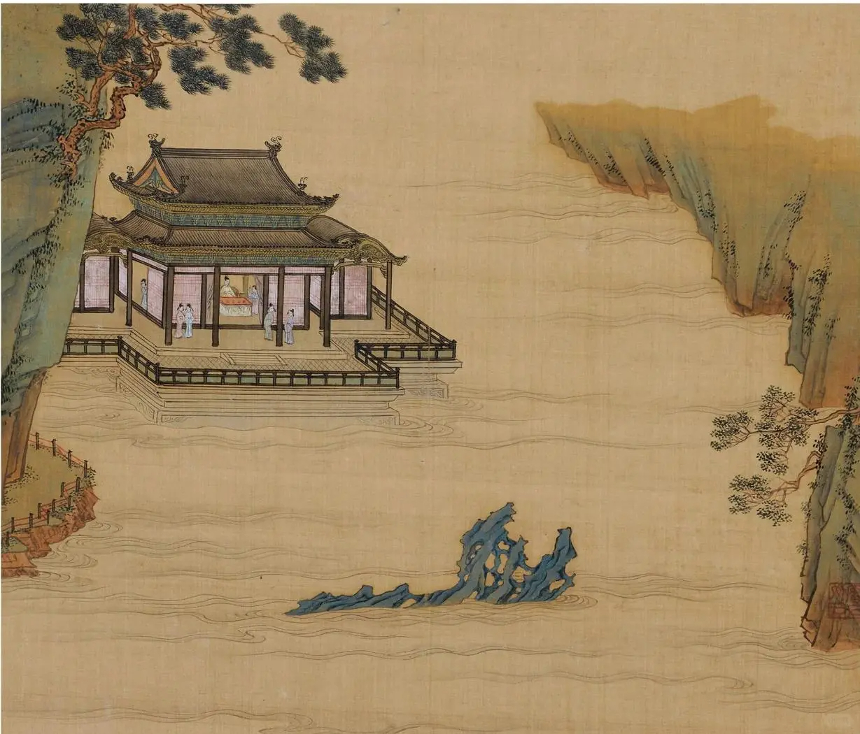 唐朝的侍女力气有那么大吗?来自明代仇英《唐人诗意图册》创作年代应是仇英39岁之前所绘制。此套画册共16开,绘四季时节帝王出游及行宫游乐题材:“早朝入宫”、“卤簿云楼”、“帝王眺瞩”、“龙舟登阙”、“帝王览胜”、“云楼旌旗”、“御道行辇”、“端楼迎春”、“登楼望峰”、“青山云楼”、“楼船泛舟”、“帝王筵宴”、“龙舟竞渡”、“天子驾六”、“城堞赏春”、“琼殿迎新”。