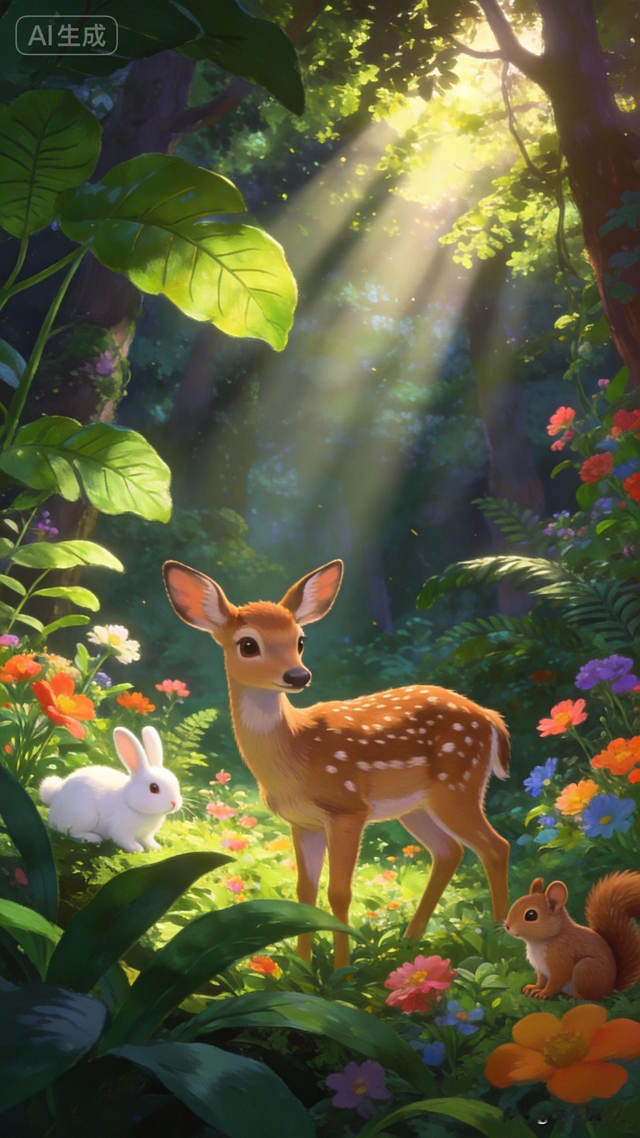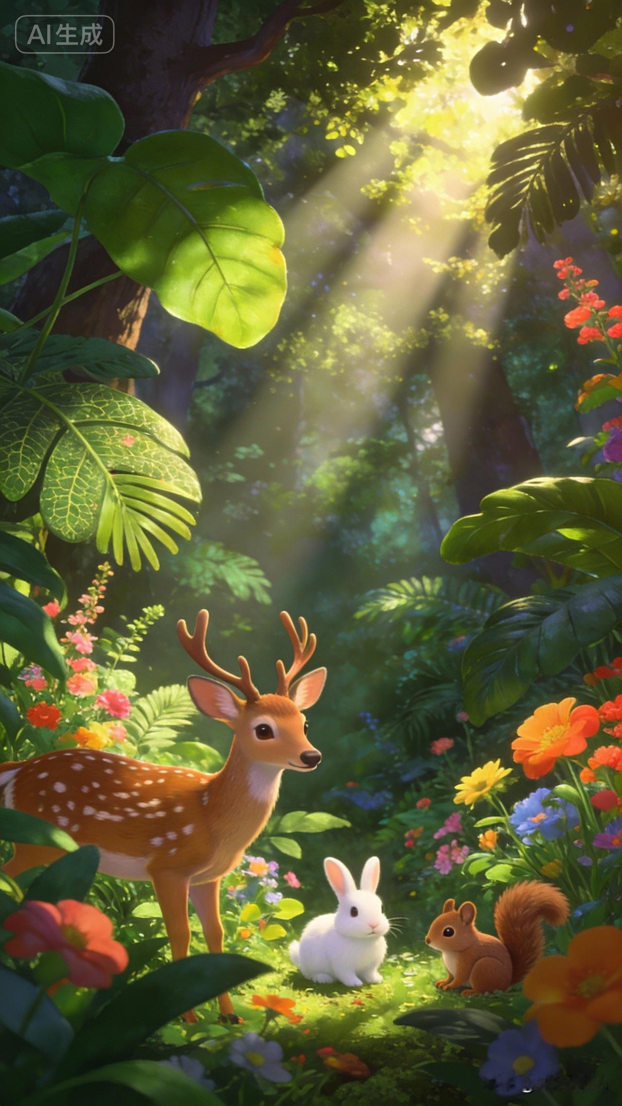 森林中的小精灵们,可爱又温馨!🌳🐝🐰🐿️