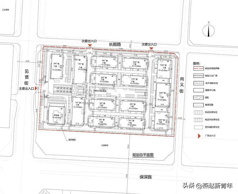 约69.59亩!保定苏商智谷产业园项目建设工程设计方案! 项目位于保定市莲池区,保深路以北、尚义街以西,规划用地面积为46391.10平方米(约69.59亩),规划用地性质为一类工业用地。总建筑面积约7.34万平方米,其中地上约7.32万平方米,地下约0.02万平方米。容积率1.59、建筑密度35.56%、绿地率4.82%,其他控制指标符合规划要求。 2026年1月4日