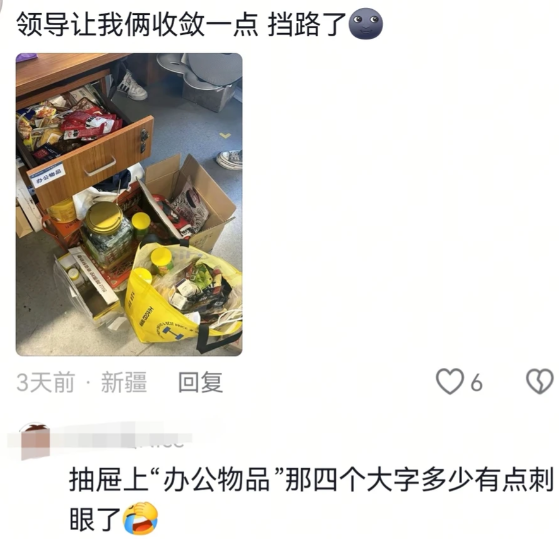 抽屉上"办公物品"那四个大字多少有点刺眼了