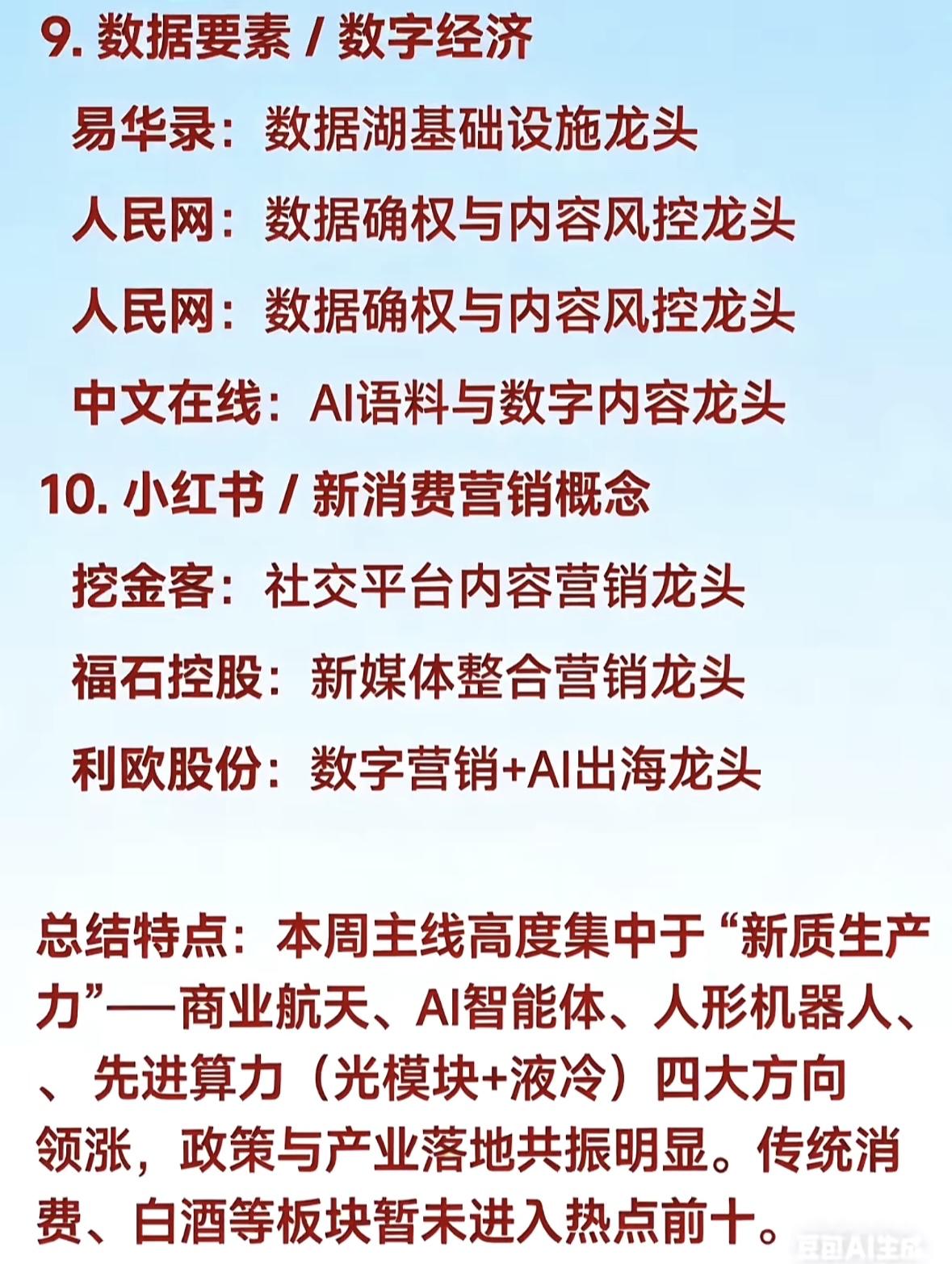 • 本周十大热点概念及龙头汇总(元旦周) "商业航天与AI应用领涨, 龙头股聚焦遥感、营销、机器人赛道, 科技热点轮动加速投资机遇。"