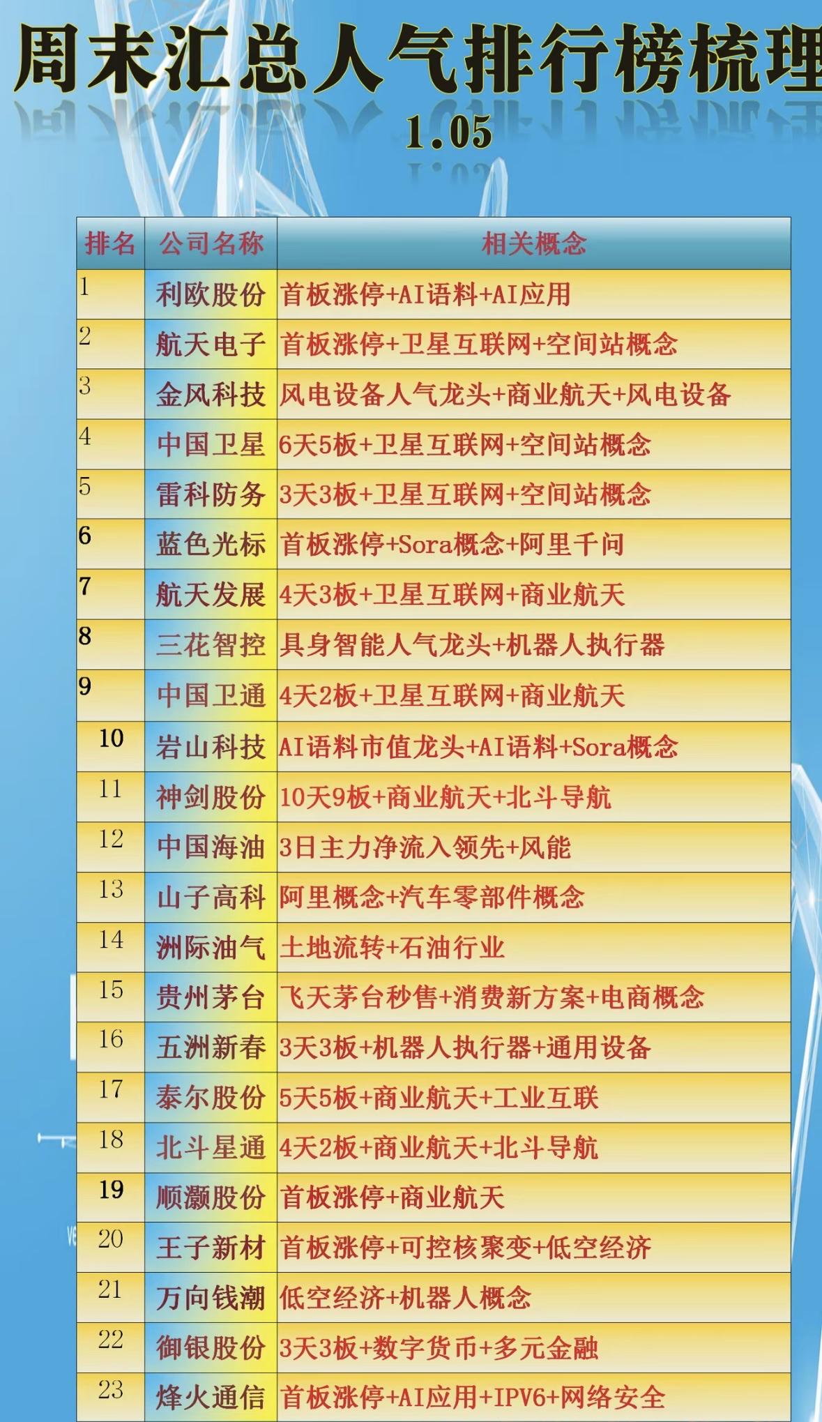 周末人气股聚焦AI语料、卫星互联网、商业航天及机器人概念,龙头股表现亮眼,市场热点轮动活跃。