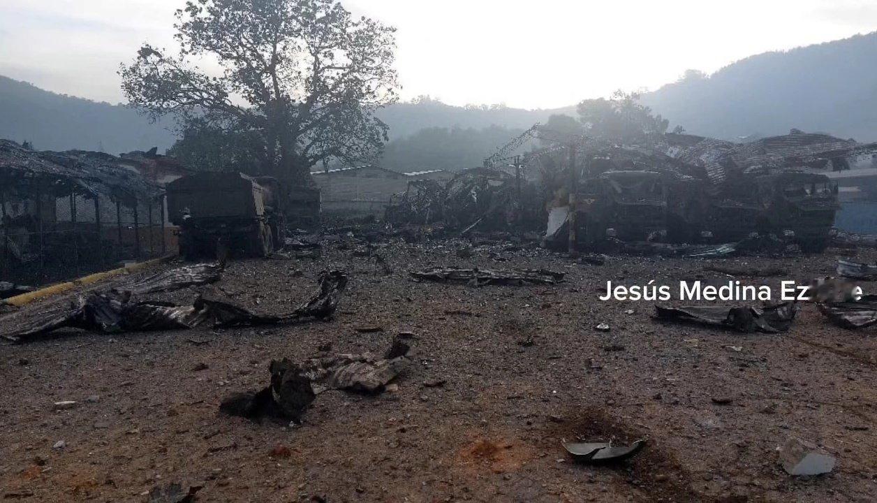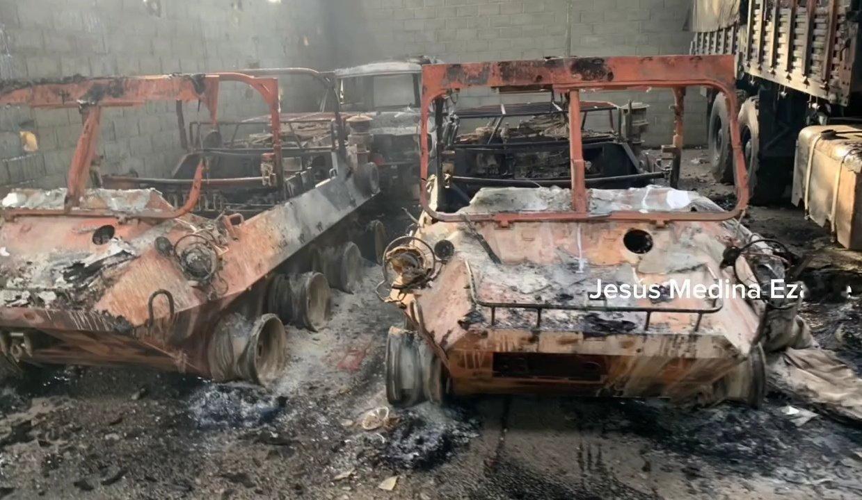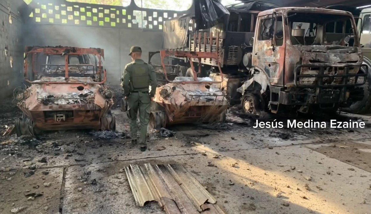 美国空军空袭位于加拉加斯南部蒂乌纳堡的第312装甲骑兵营“胡安·巴勃罗·阿亚拉”基地后的景象。画面显示,被烧毁的“蝎子-90”轻型坦克、“龙骑兵300”装甲车、VP4“山猫”8×8两栖装甲运兵车和卡玛兹卡车均被损毁。