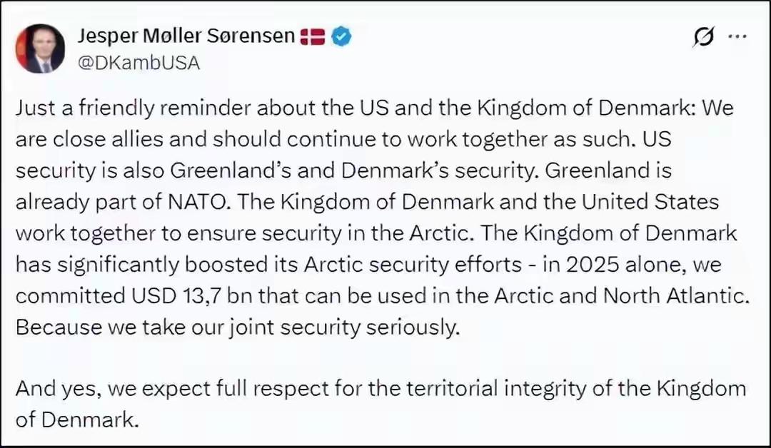 美国现在是想干啥就干啥,想抓总统就抓总统,想拿走别国家的土地就拿走,丹麦这次有点悬。 当地时间3日,美国白宫高官斯蒂芬·米勒的妻子、保守派网红凯蒂·米勒在社交媒体发帖暗示美国要“拿下格陵兰岛”。 丹麦这次有点儿悬,格陵兰岛可能保不住了,美国队不是一个阵营的国家,都敢随便抓总统,刀刃向外,对自己的盟友,刀刃向内也毫不客气,米勒表态,很快就会拿下格陵兰岛,这可不是空穴来风。特朗普真想做,丹麦想阻拦也阻拦不了,丹麦的格陵兰岛这次有点有点悬,估计格陵兰岛真的保不住了。 有那么一句话:做美国的对手,可怕!做美国的盟友,遭殃啊! 格陵兰岛丹麦能守住吗?