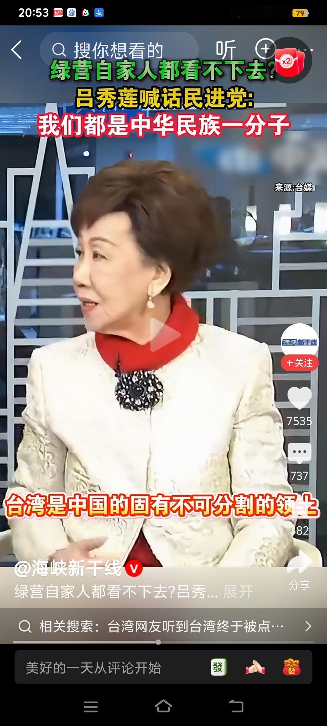 中国人民解放军东部战区“正义使命2025”军事演习,吓得以从事台独为己任的资深顽固台独分子吕秀莲,都改口说“我们都是中华民族的一分子,台湾是中国的固有不可分割的领土”! 提起吕秀莲,人称资深台独“祖母绿”,此人年轻时就参加了七十年代末台独分子们搞的“美丽岛”事件,还被当时国民党当局判刑入狱。当选台湾地区副领导人后,顽固地坚持“台湾是一个主权国家”的立场,并用“远亲和近邻”的关系鼓吹台湾和中国大陆是两个主权各自独立的国家。最让全体中国人愤恨的是,吕秀莲居然寡廉鲜耻地为日本通过《马关条约》割让中国台湾的事件歌功颂德,严重伤害了中国人民的民族尊严和感情。 这样一个老牌顽固地台独分子,现在竟然公开说台湾是中国不可分割的领土,决不是吕秀莲良心发现或者当初喊“台独”只是为了选票,而是我们的围台军事演习把她真的吓怕了,我们的军事演习已经让所有大大小小深绿浅绿的台独分子们认识到,台独是死路一条。吕秀莲害怕中国人民解放军一旦收复台湾,她将会被抓捕遭到正义的审判,所以现在趁早赶紧改口并选择站队统派,以免将来被钉在历史的耻辱柱上。 中国人民解放军对台的军事演习力度已经够了,效果也达到了,以后可能没有军事演习了,而是直接登岛接管台湾。