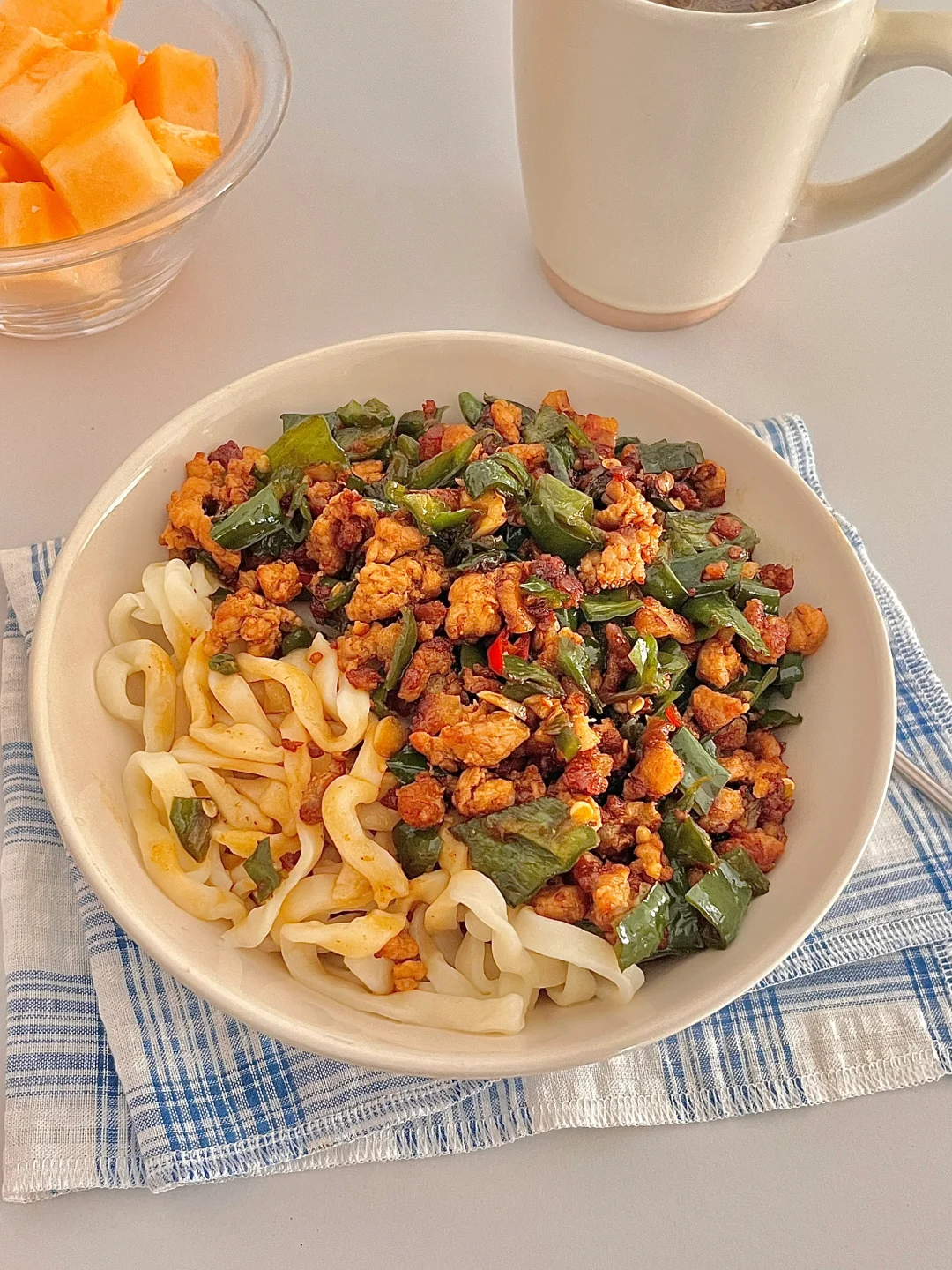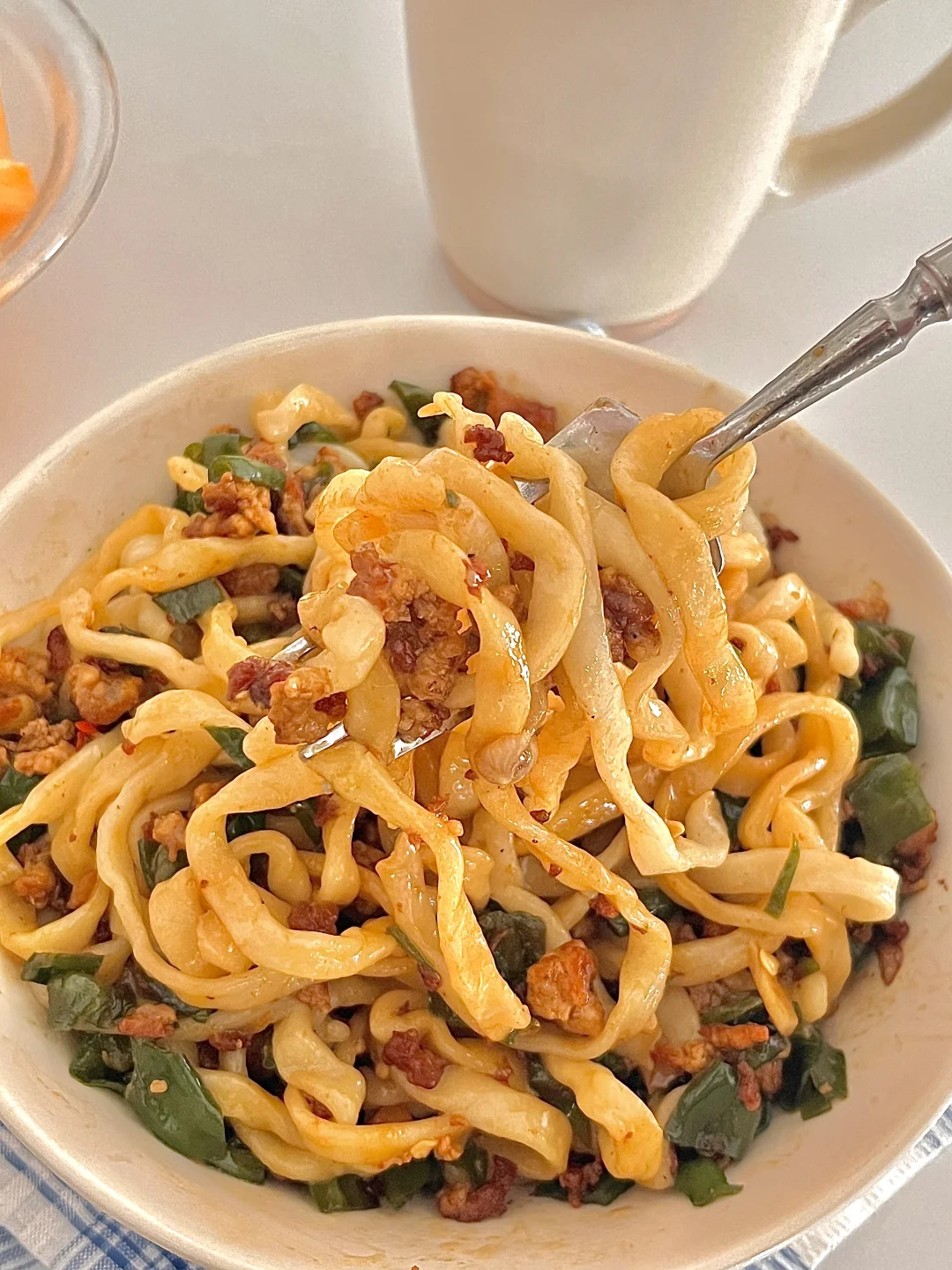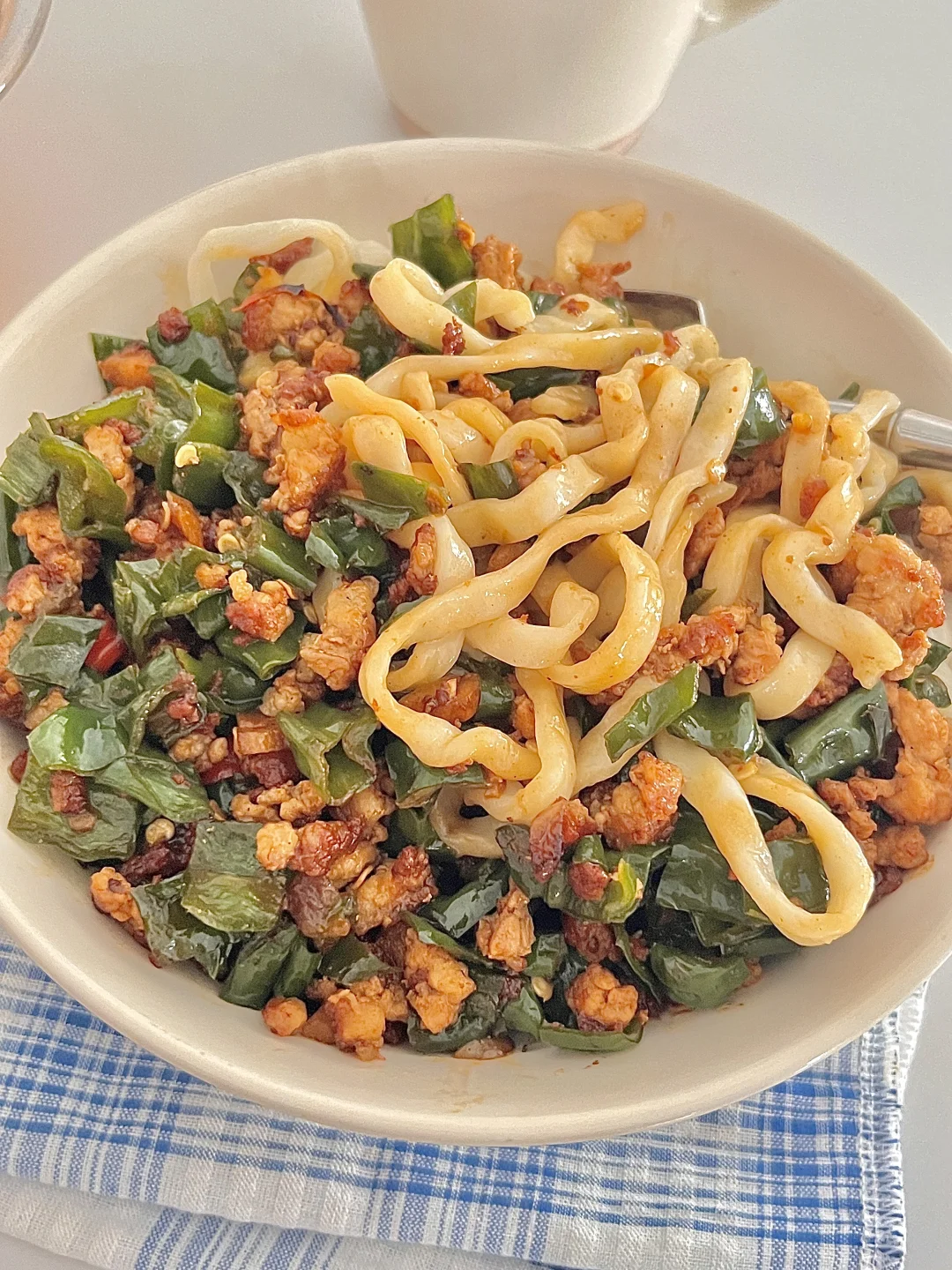 幸福有很多种,这一碗裹满鲜香浇头的拌面算一个[赞R]劲道的面条配上香辣入味的青椒炒肉沫。每一口都超满足的✌🏻减脂期也能吃的面条,注意量就行,没试过的姐妹快去做,巨香~ 食材:鲜面条 青椒 肉沫 做法在图上⬆️好吃简单 快去做吧~
