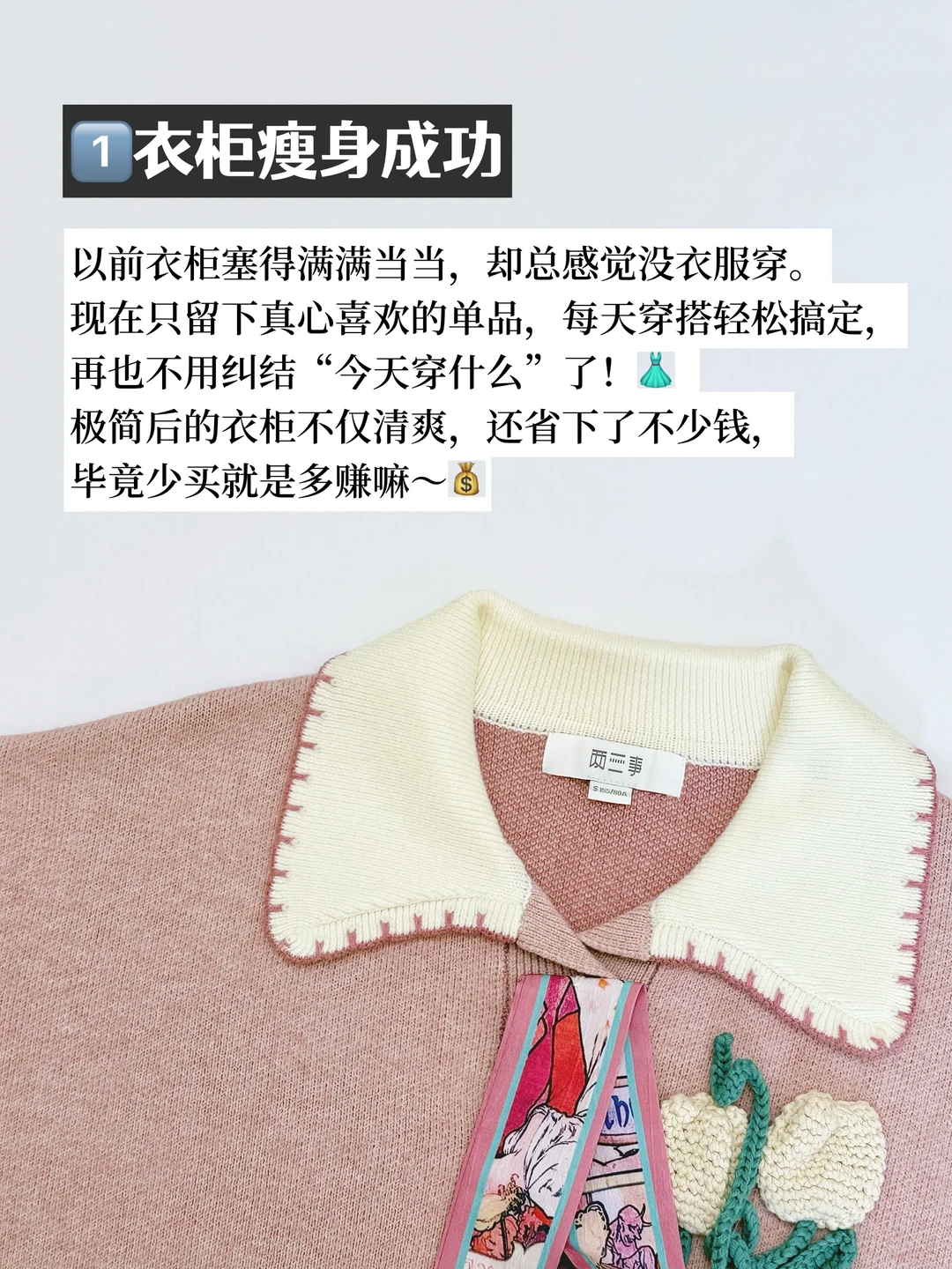 以前衣柜塞得满满当当,却总感觉没衣服穿。现在只留下真心喜欢的单品,每天穿搭轻松搞定,再也不用纠结“今天穿什么”了!👗